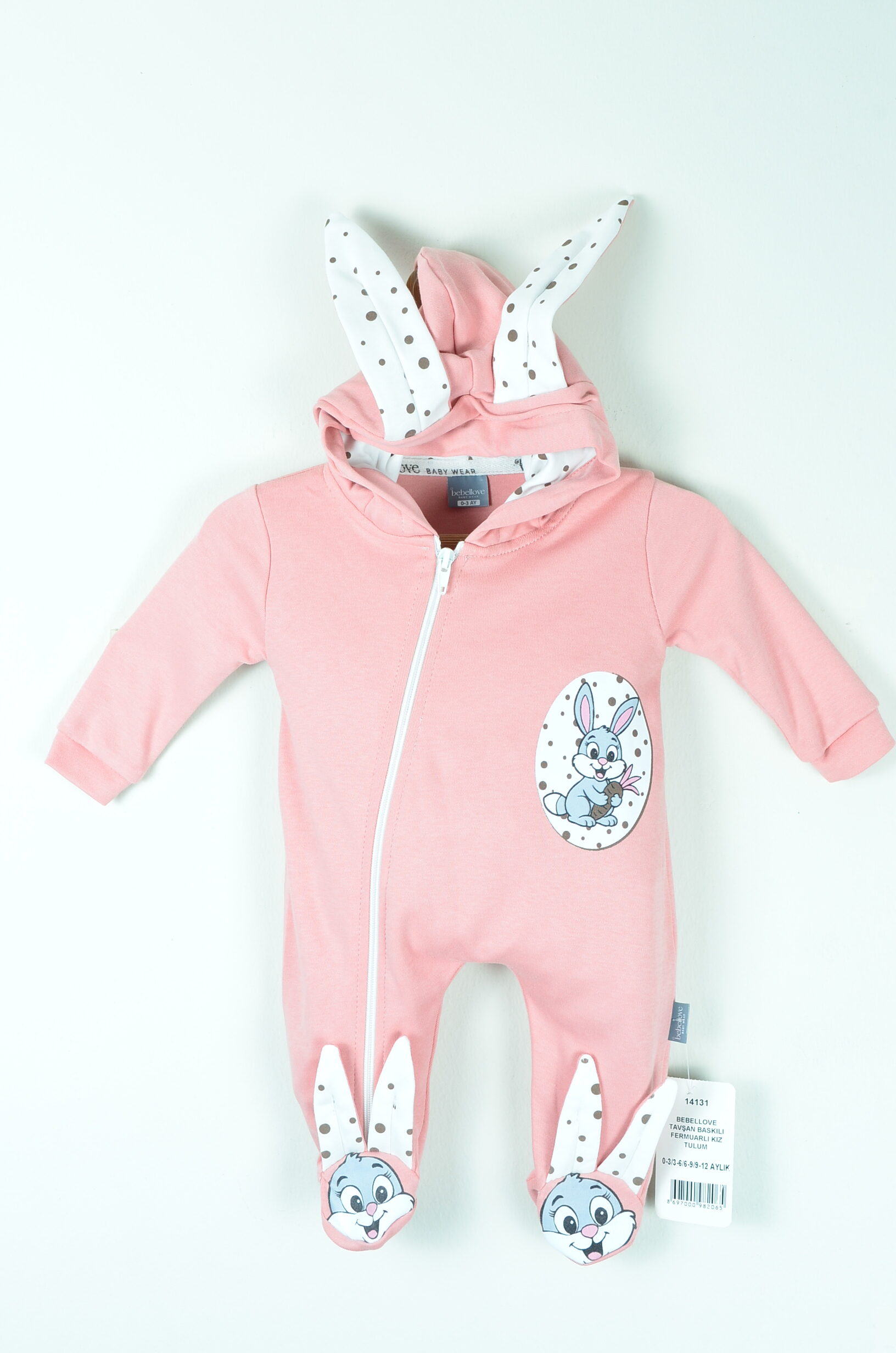 Tavşan Kulaklı Pembe Bebek Tulumu (0-12 AY)