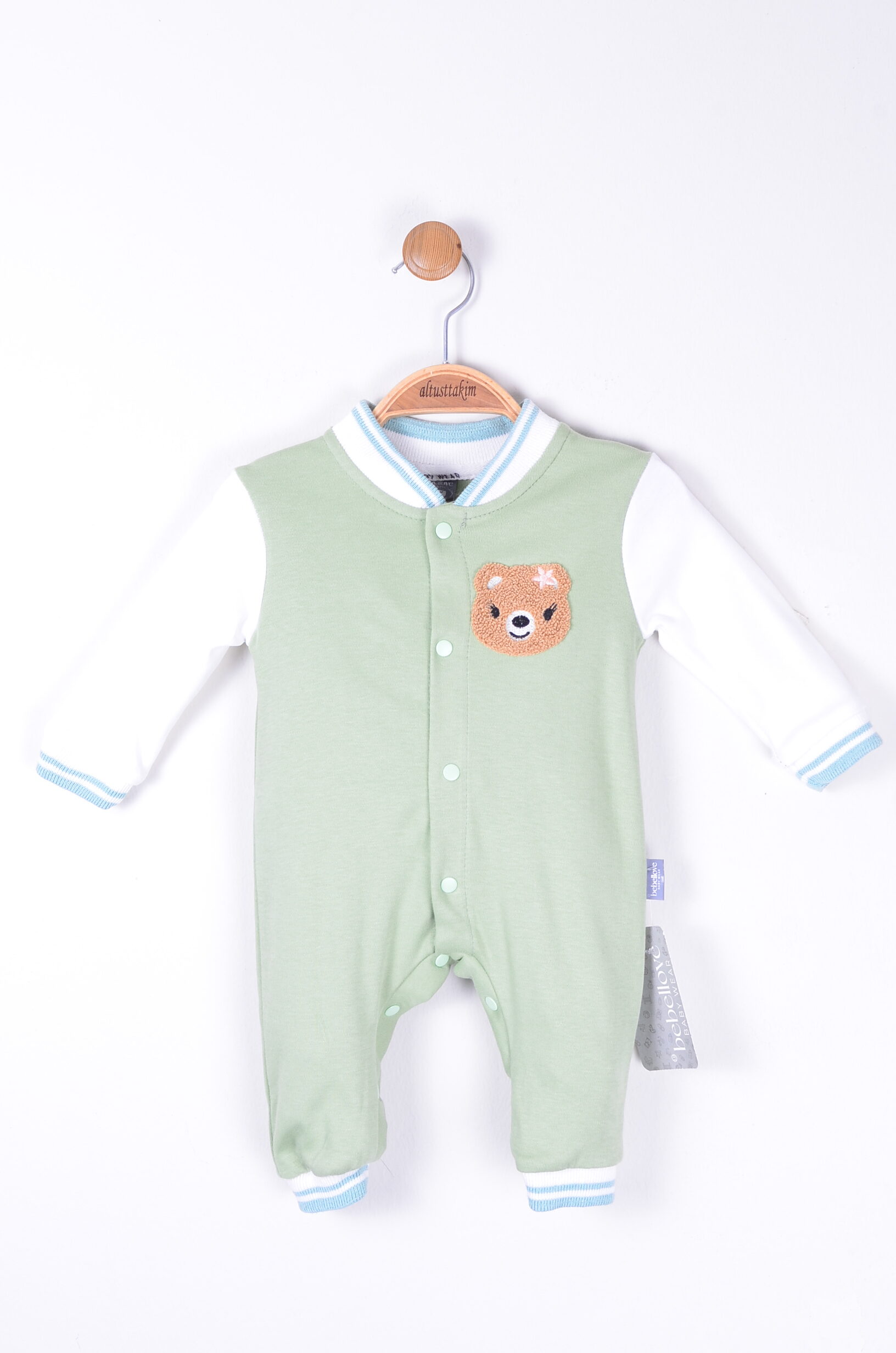 Mint Yeşil Ayıcık Nakışlı Bebek Tulumu (0-12 YAŞ)