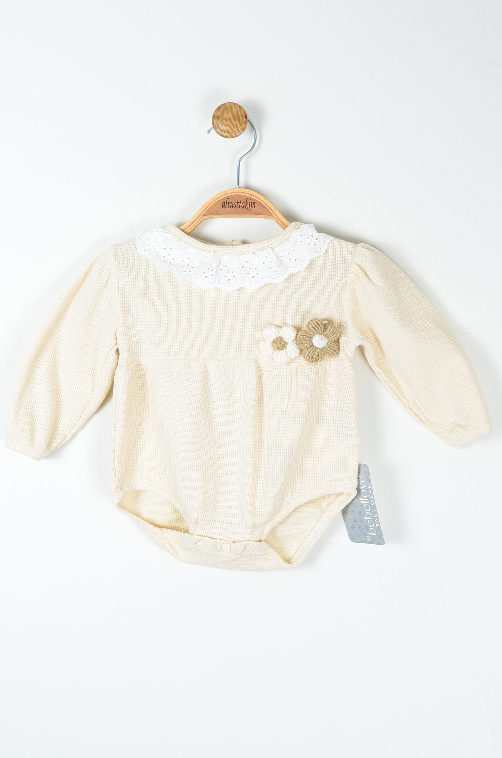 Dantel Yakalı Çiçek Nakışlı Bebek Bodysuit (0-12 AY)
