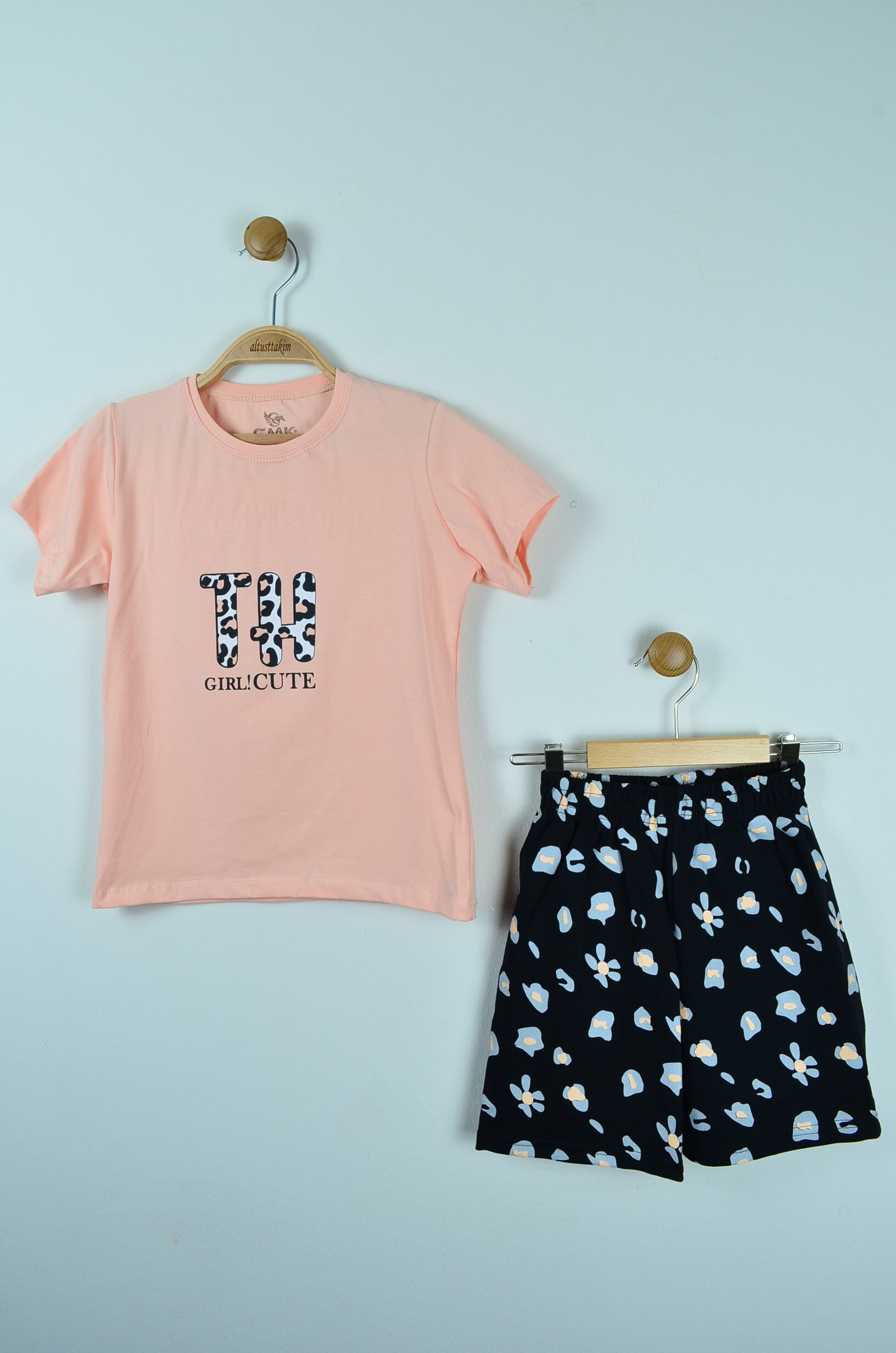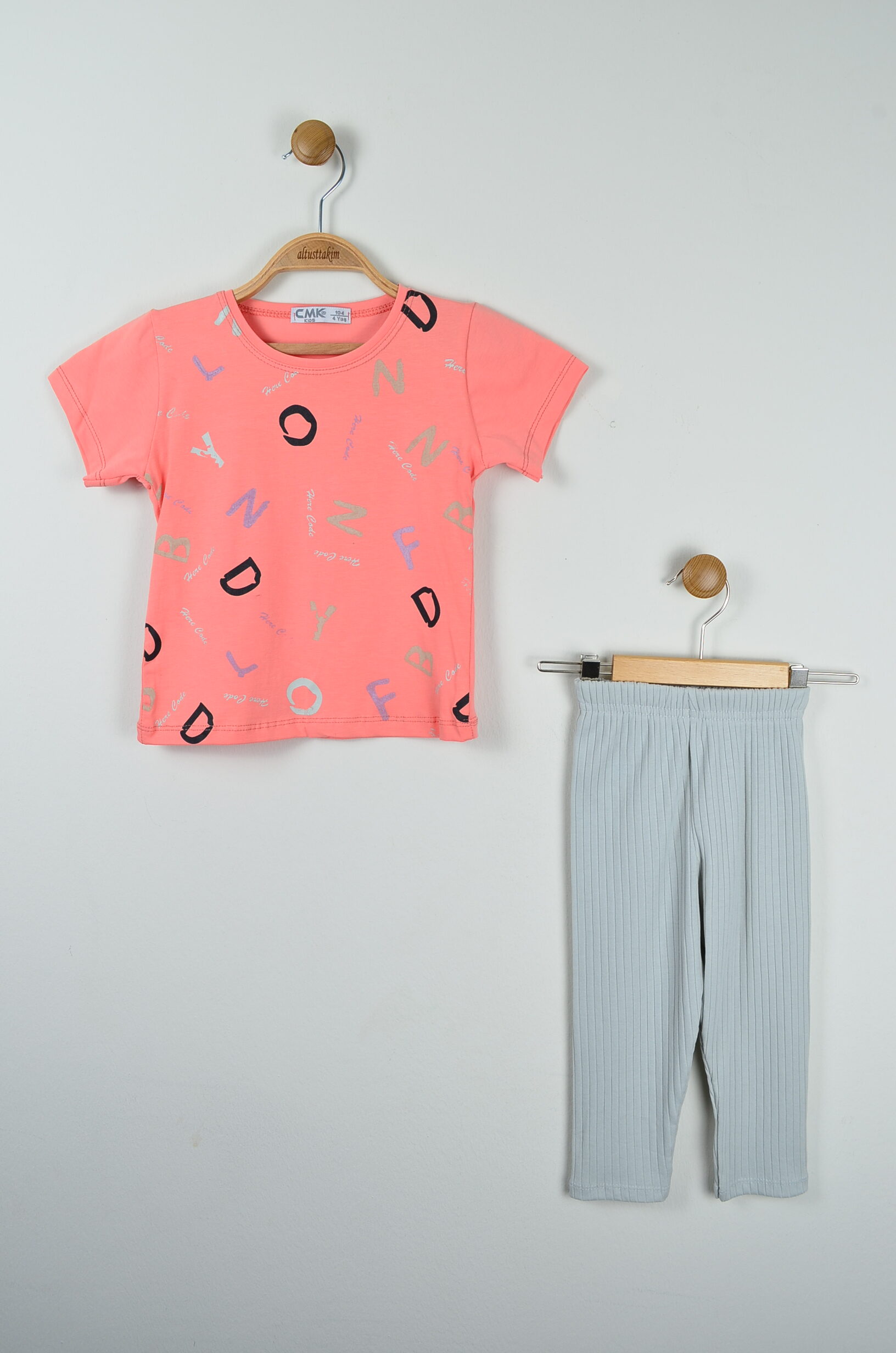 Harf Desenli Şeftali Tonlarında Alt Üst Takım (6-9 Yaş)
