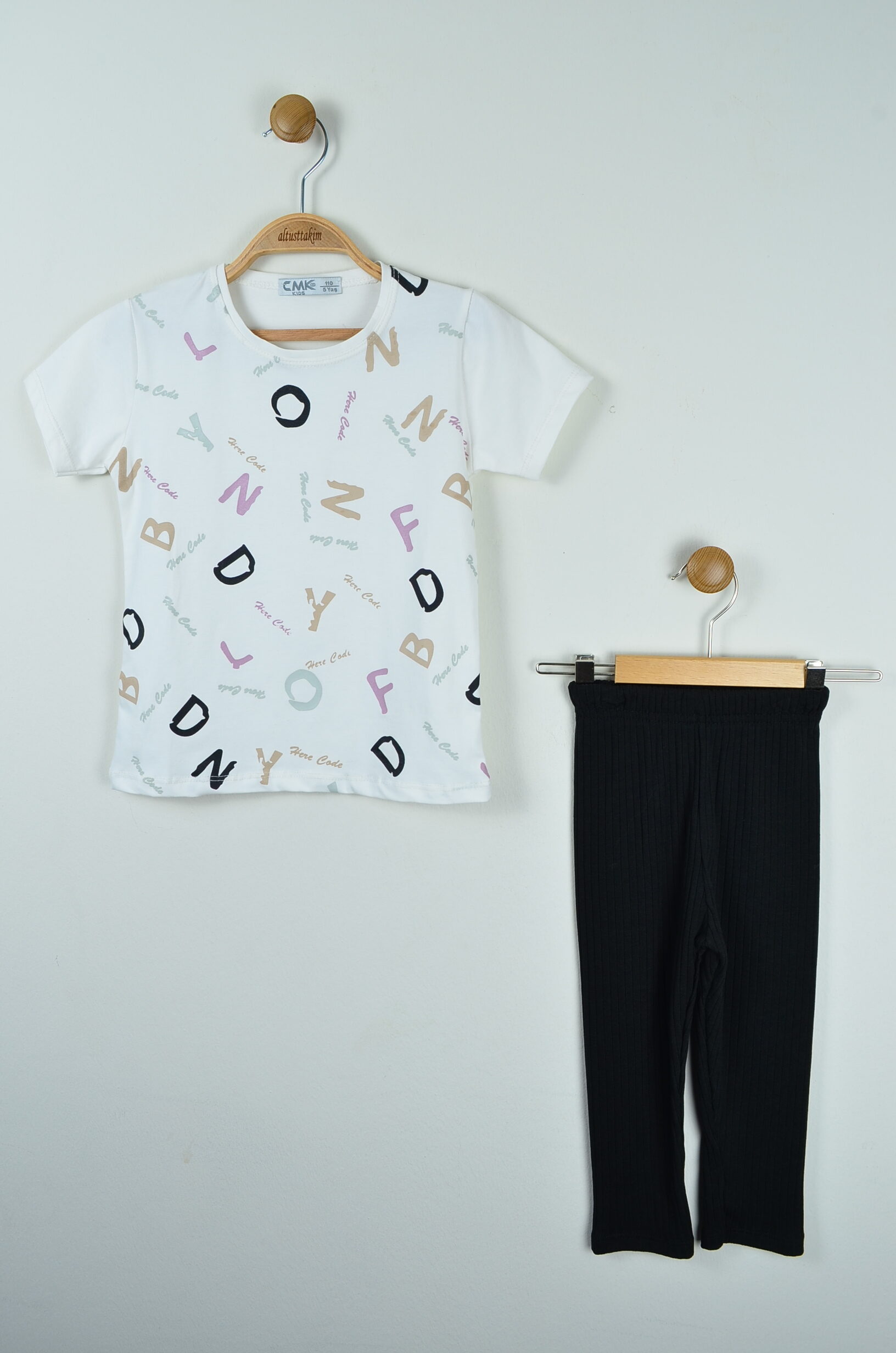 Harf Desenli Beyaz Alt Üst Takım (6-9 Yaş)