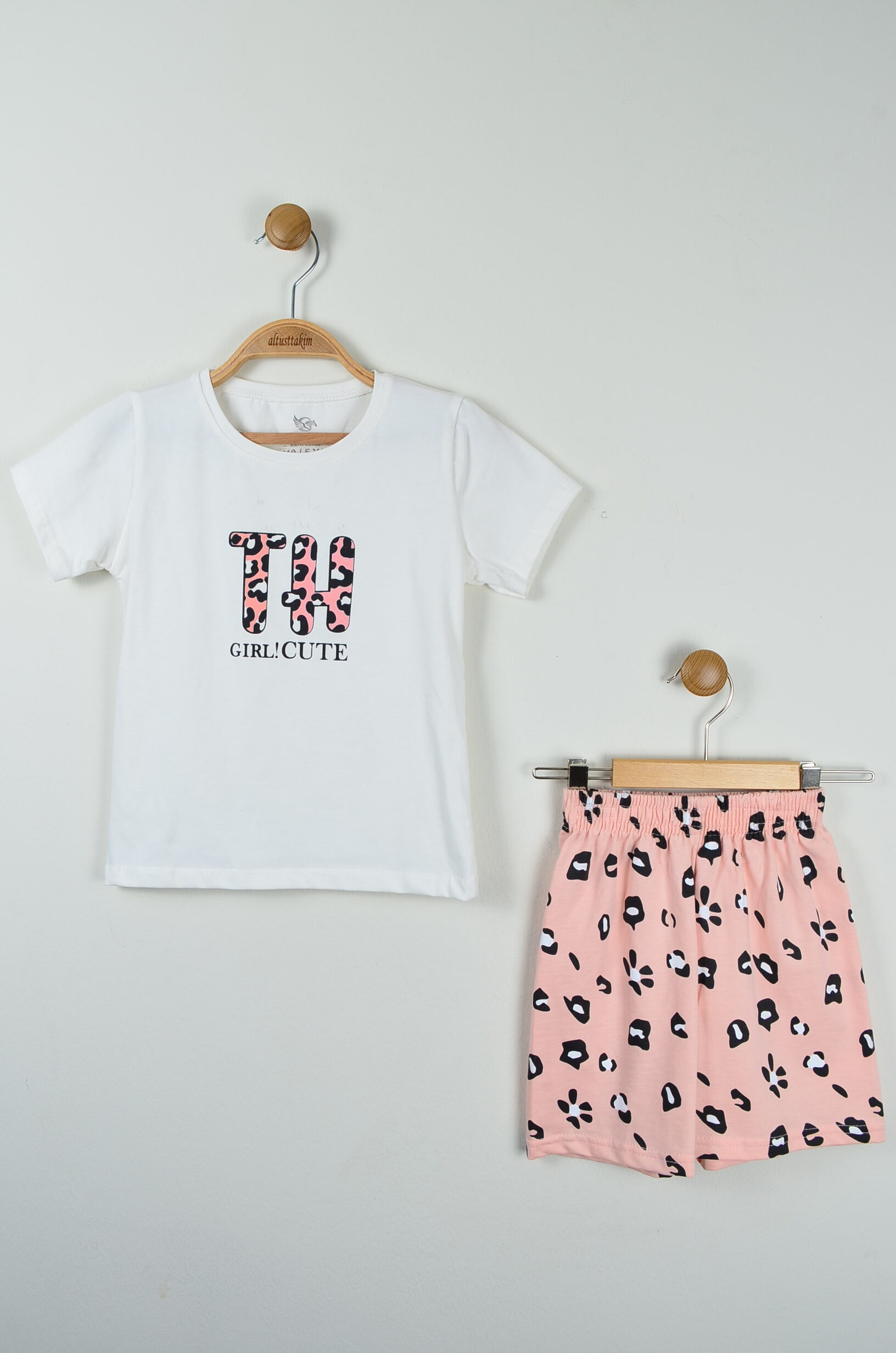 Leopar ve Çiçek Desenli Beyaz Alt Üst Takım (4-8 Yaş)
