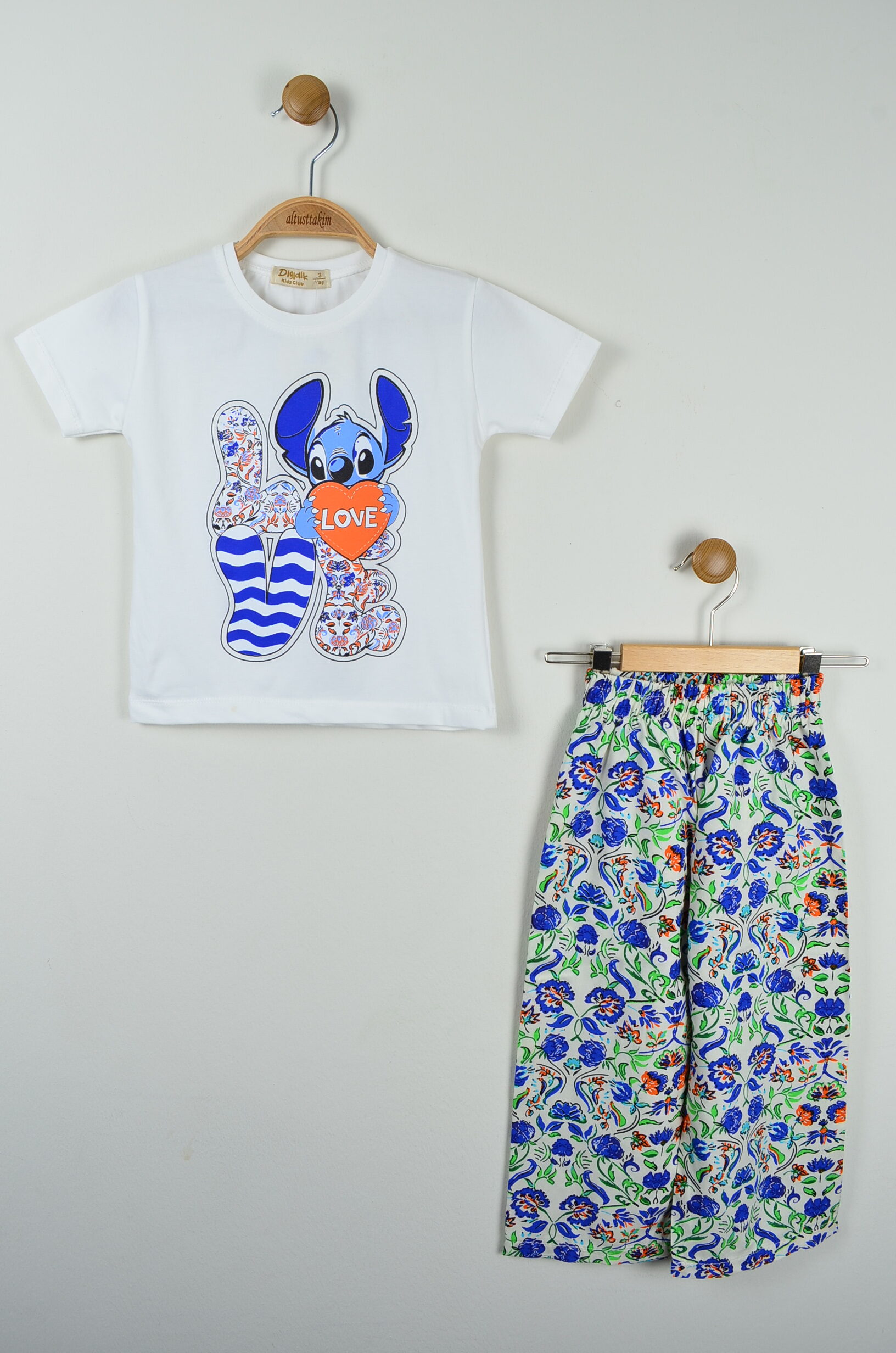 Stitch Baskılı Tişört ve Çiçekli Pantolon İki Parça Takım (4-6 Yaş)