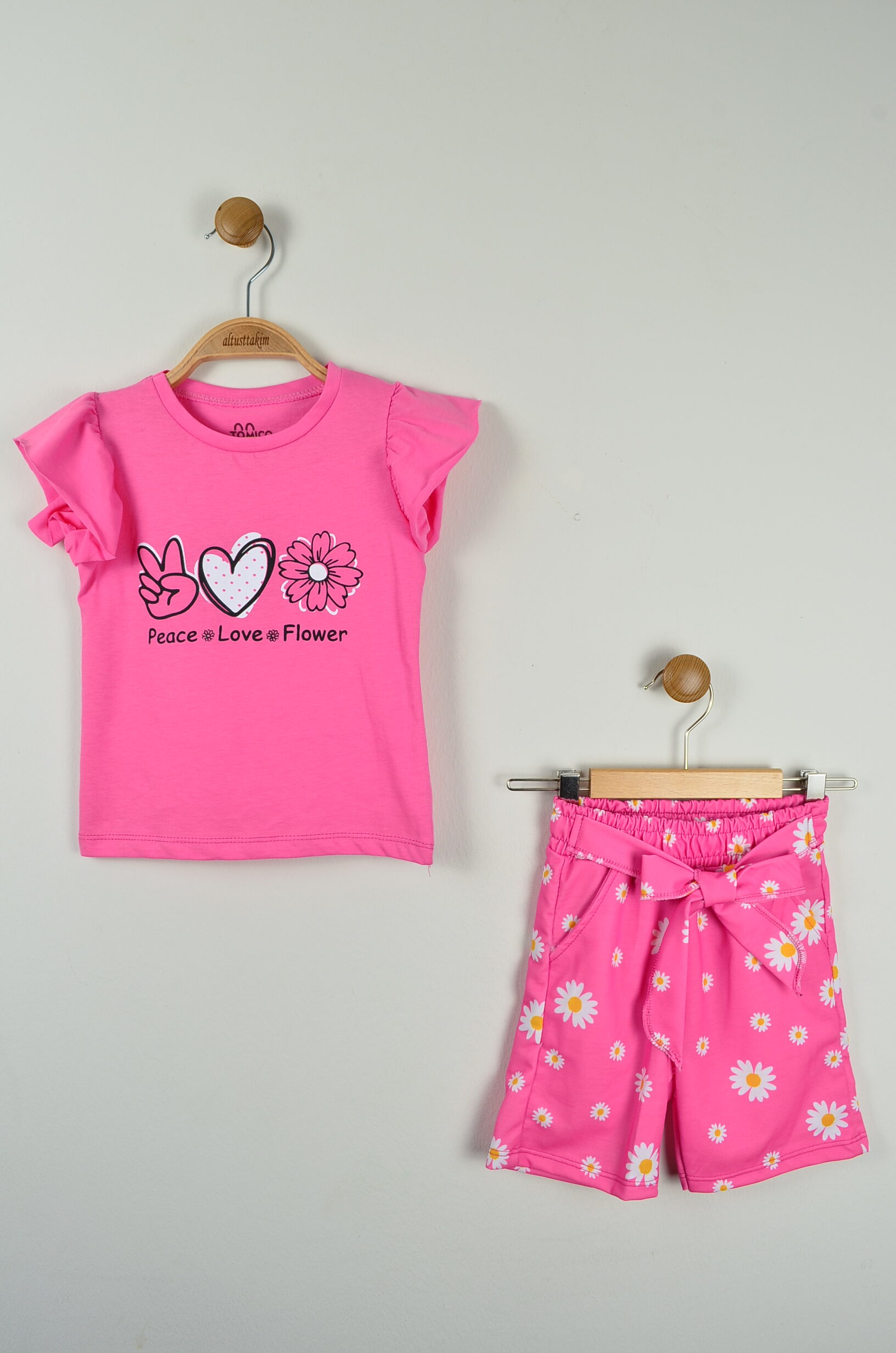 Papatya Desenli Pembe Renk Kız Alt Üst Takım (1- 4 Yaş)