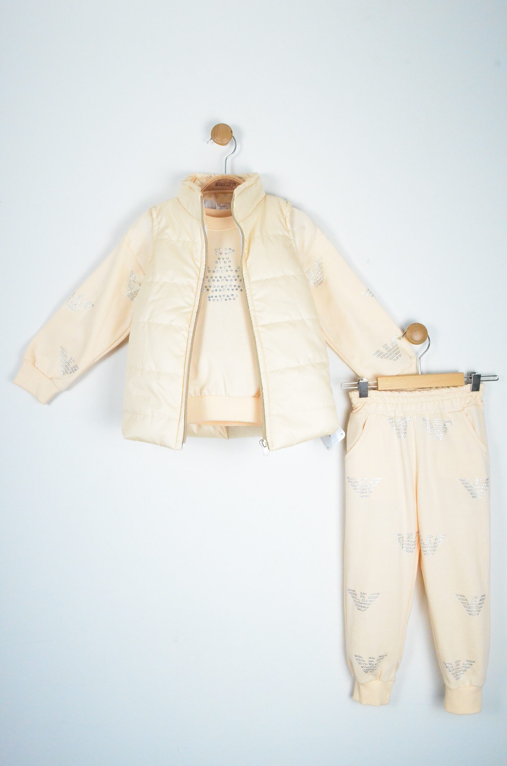 ŞİŞME YELEKLİ 3 PARÇA BEJ RENGİ TAKIM (2-5 YAŞ)
