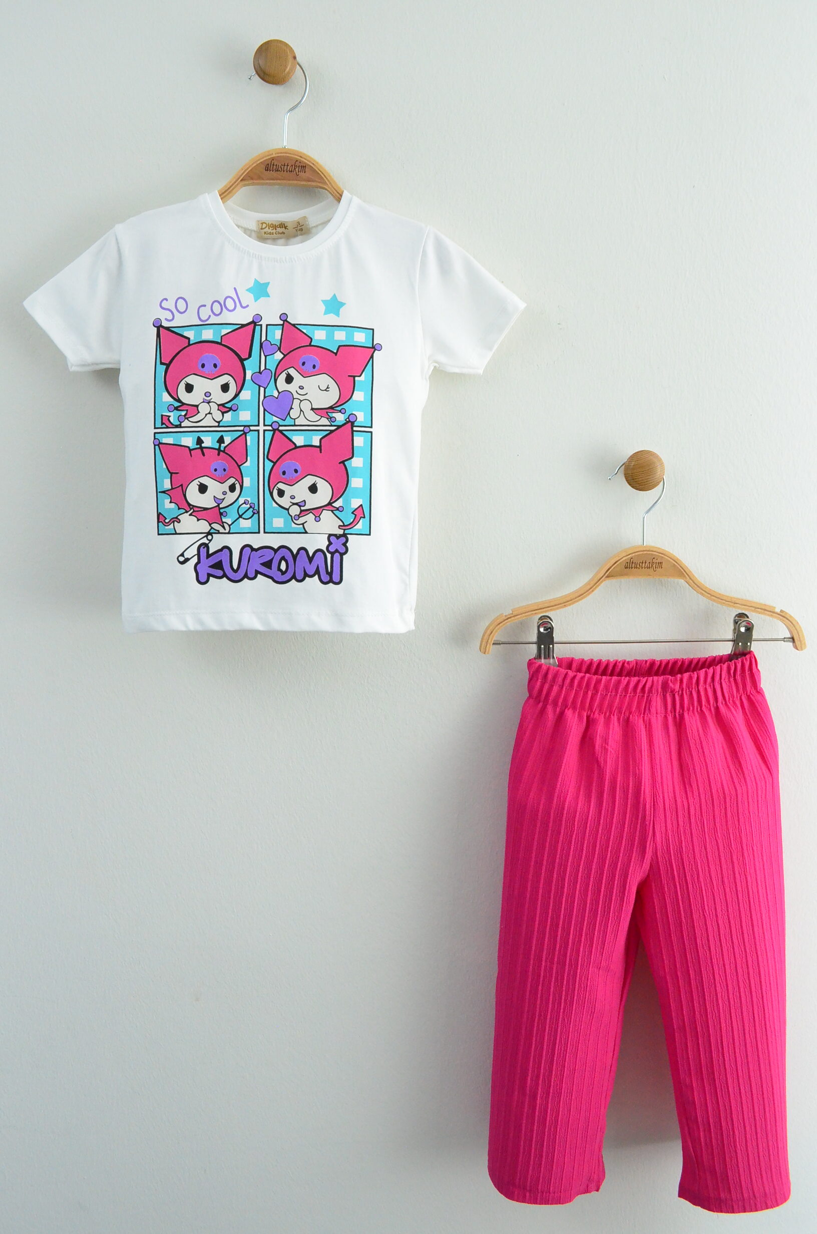 KUROMİ BASKILI BEYAZ ALT ÜST TAKIM (3-6 YAŞ)