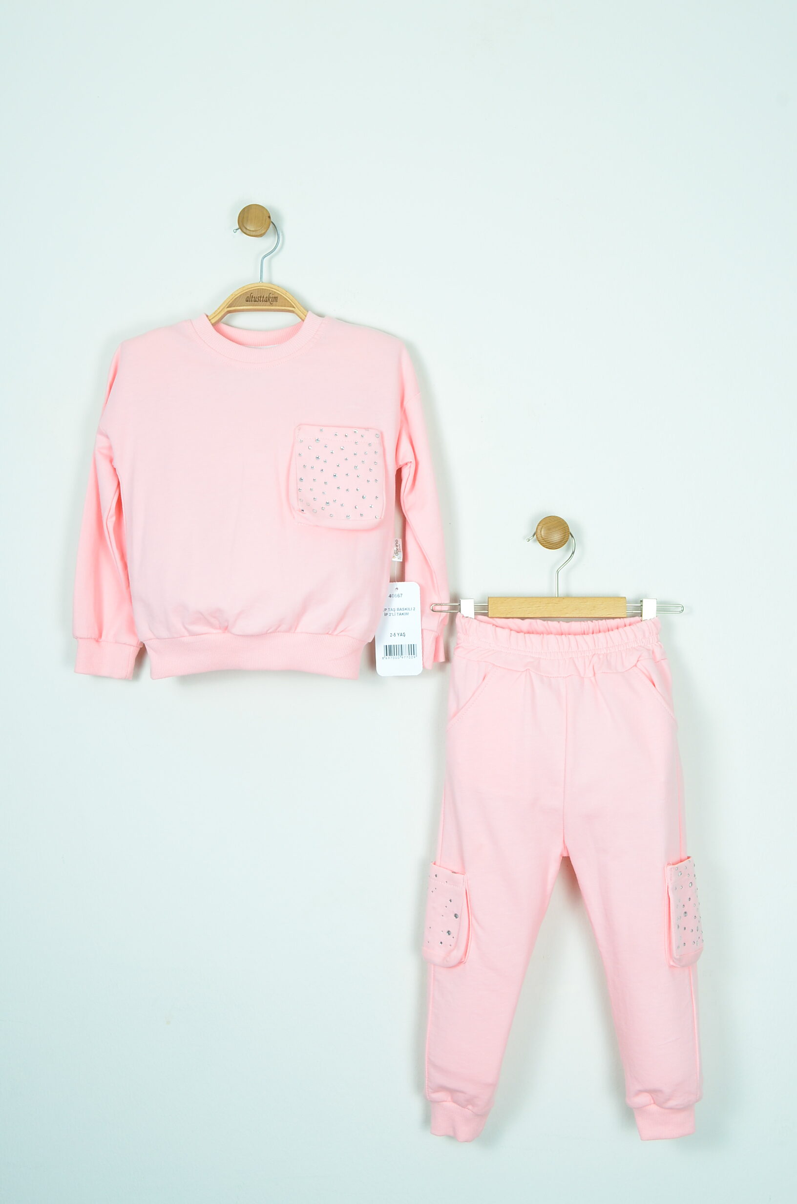 Taş Detaylı Pudra 2’li Kız Çocuk Takımı(2-5)
