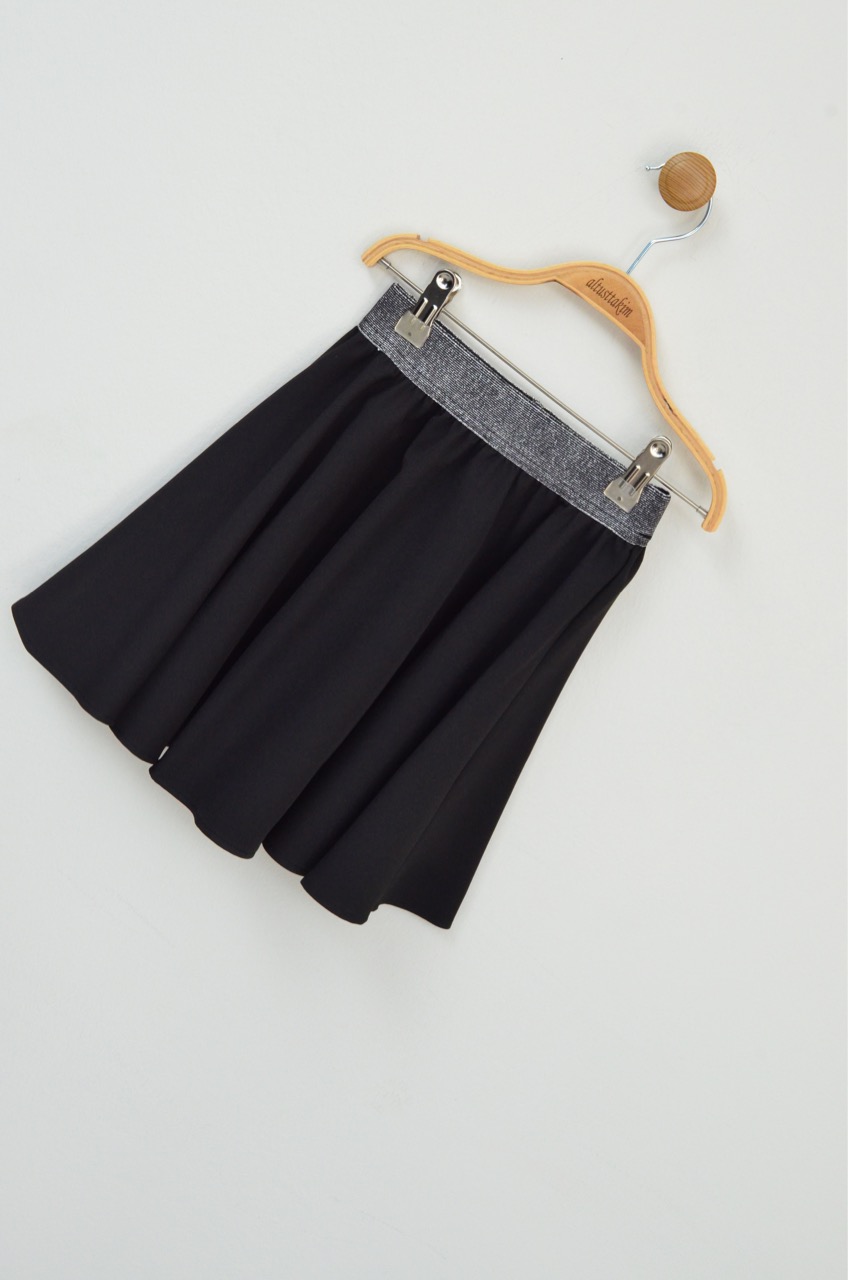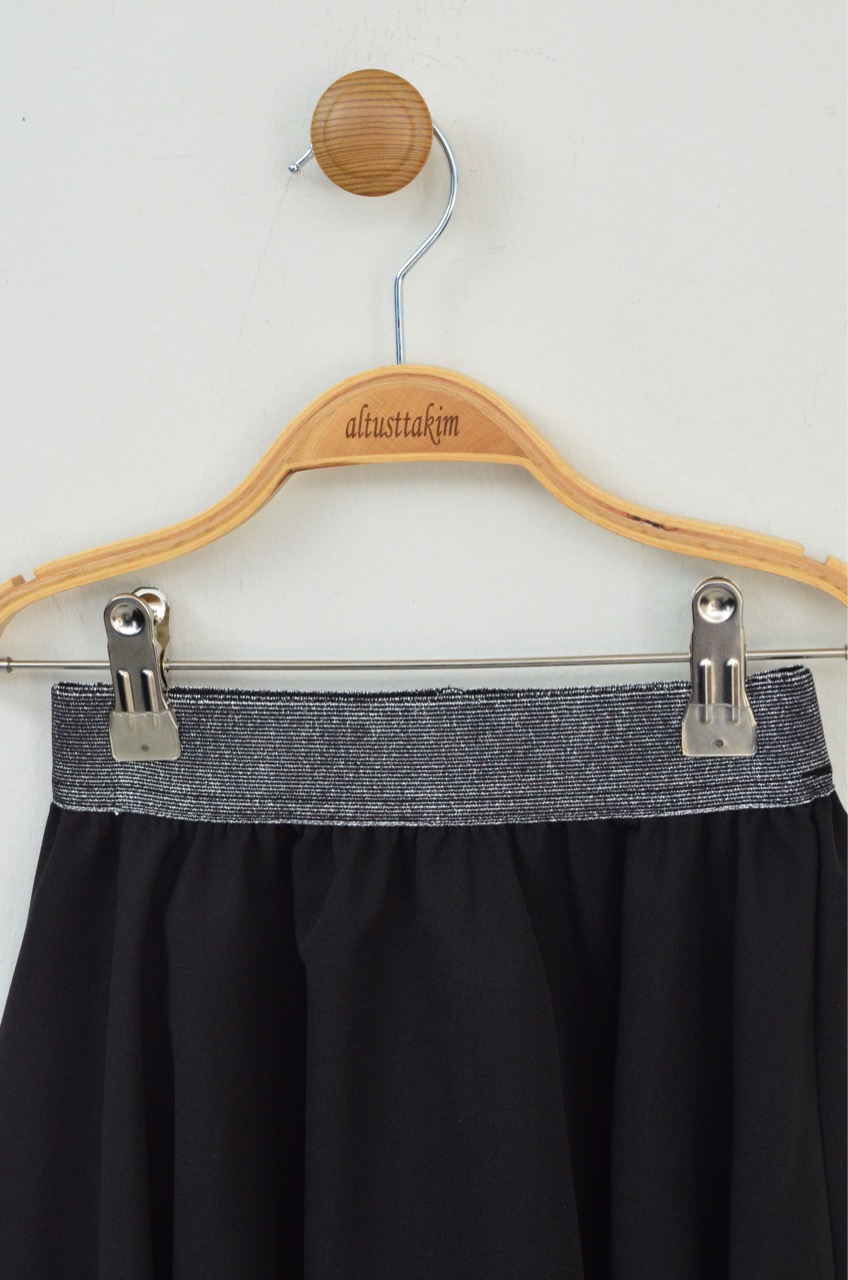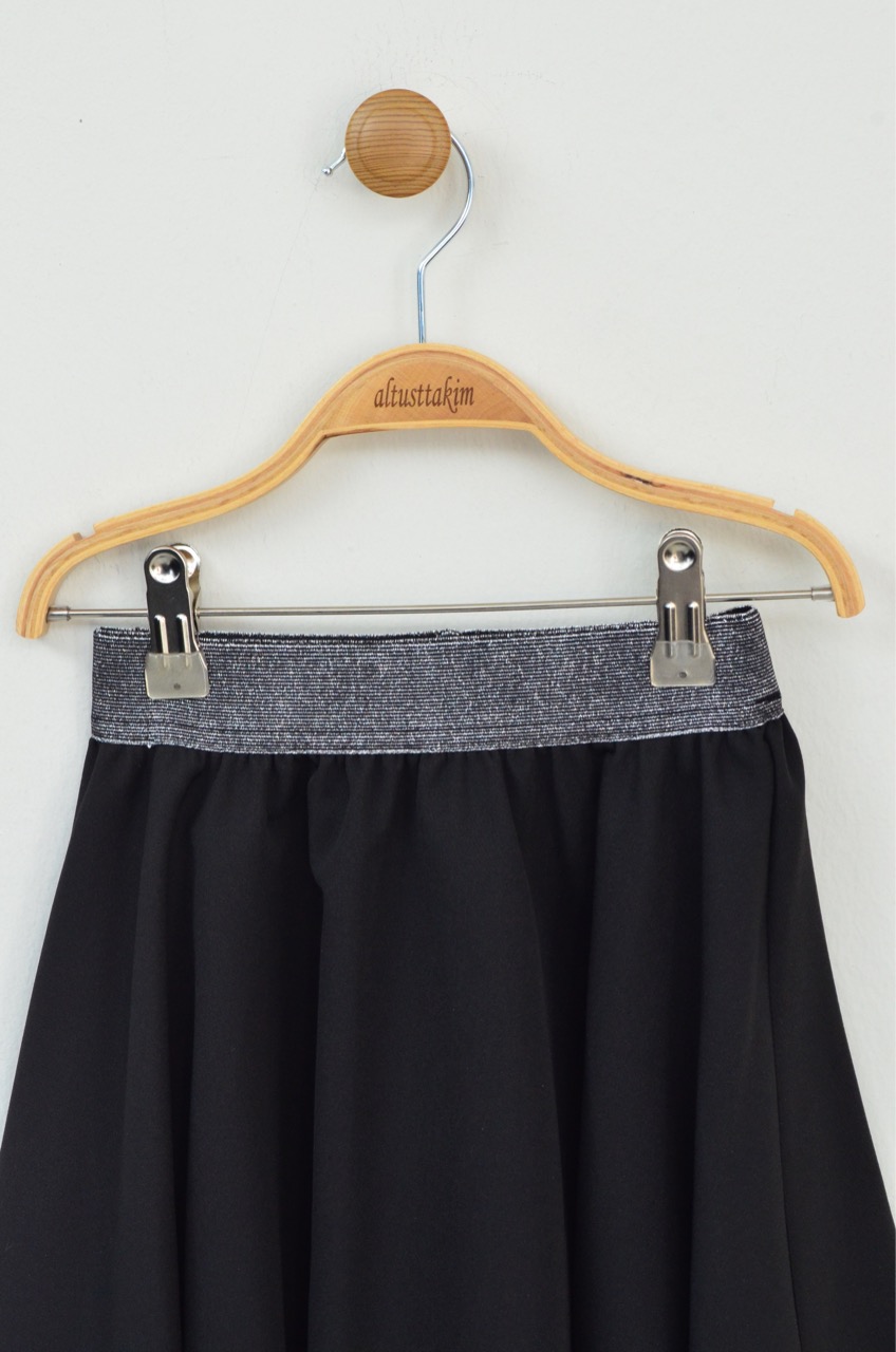 23 Nisan Özel Beli Simli Lastikli Volanlı Siyah Etek (5-14 Yaş)