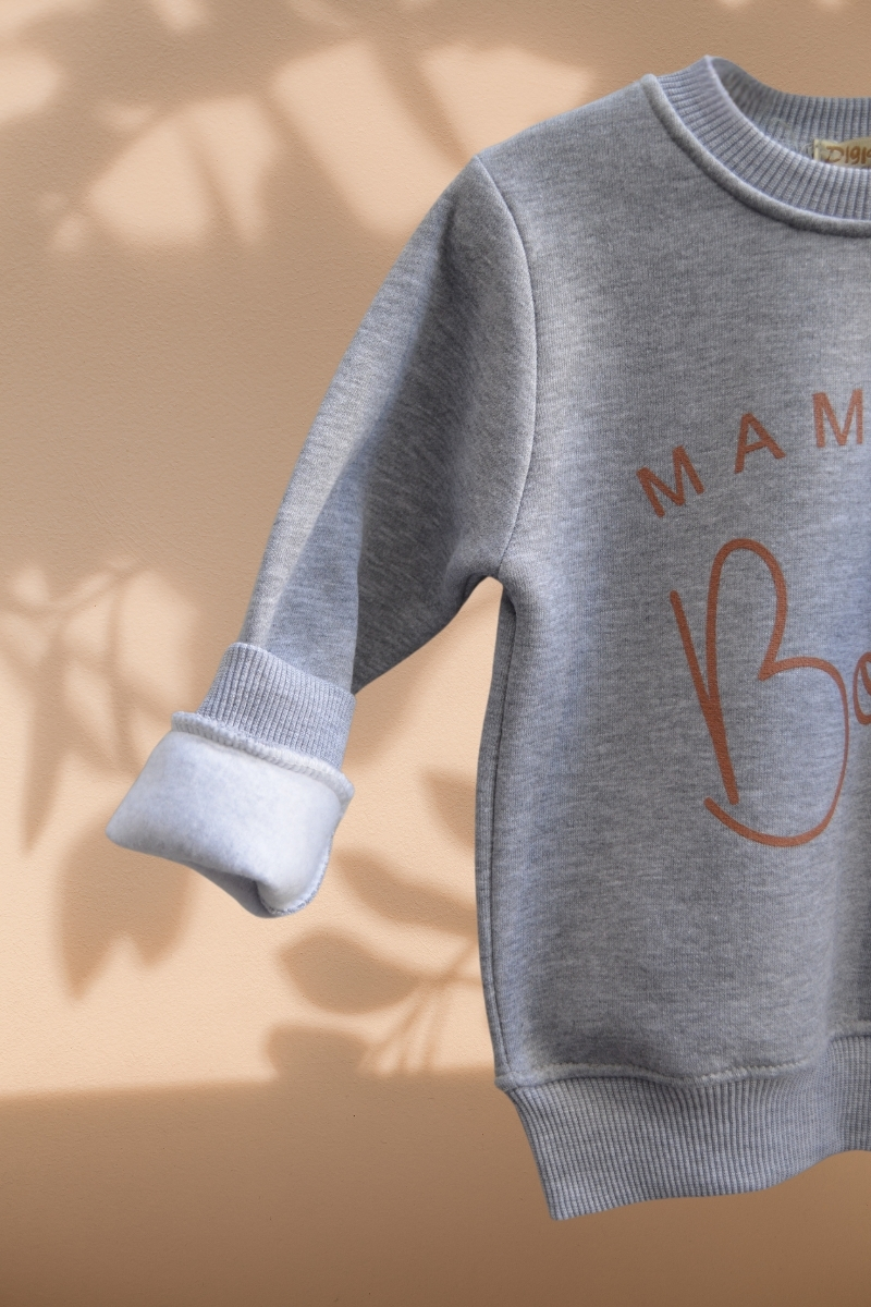 Gri Renk 3 İplik Kalın Sweatshirt (3-7 Yaş Çocuk)