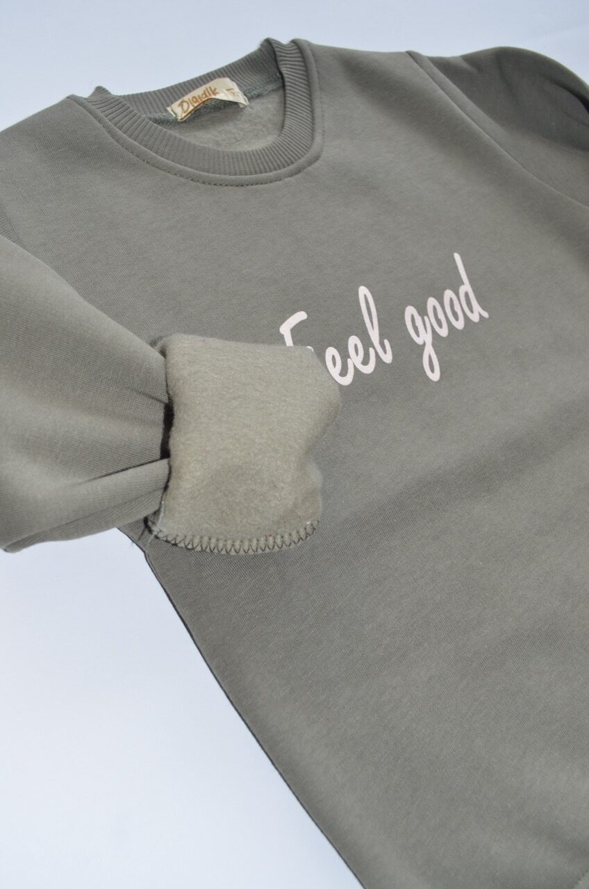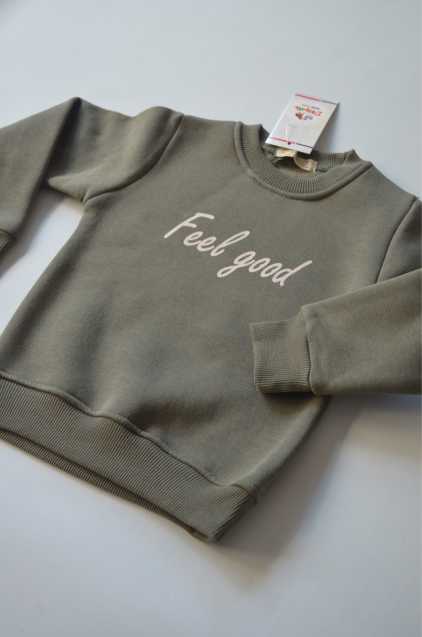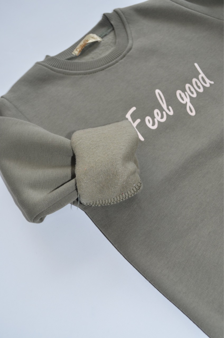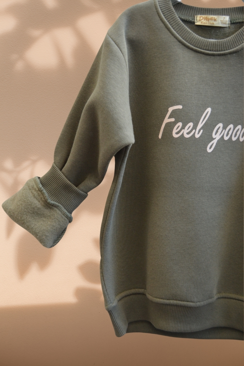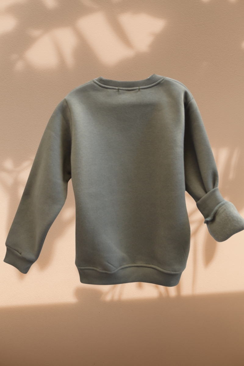 Haki Renk 3 İplik Kalın Sweatshirt (3-7 Yaş Çocuk)