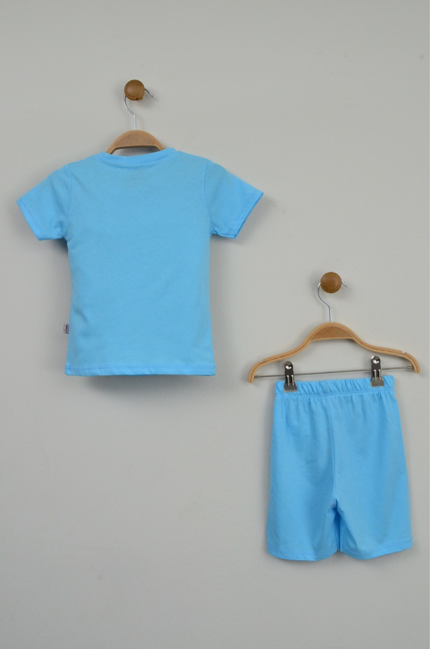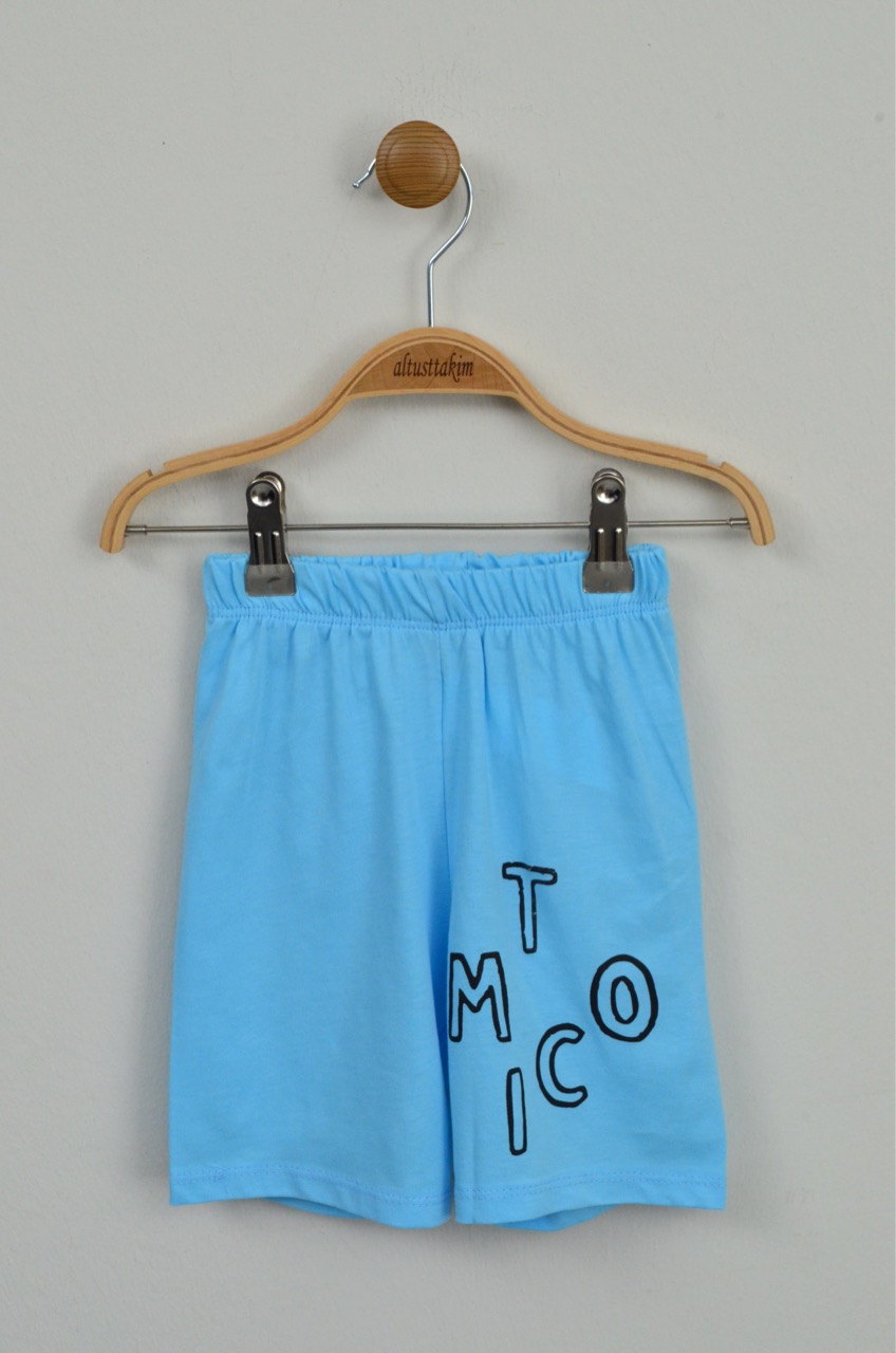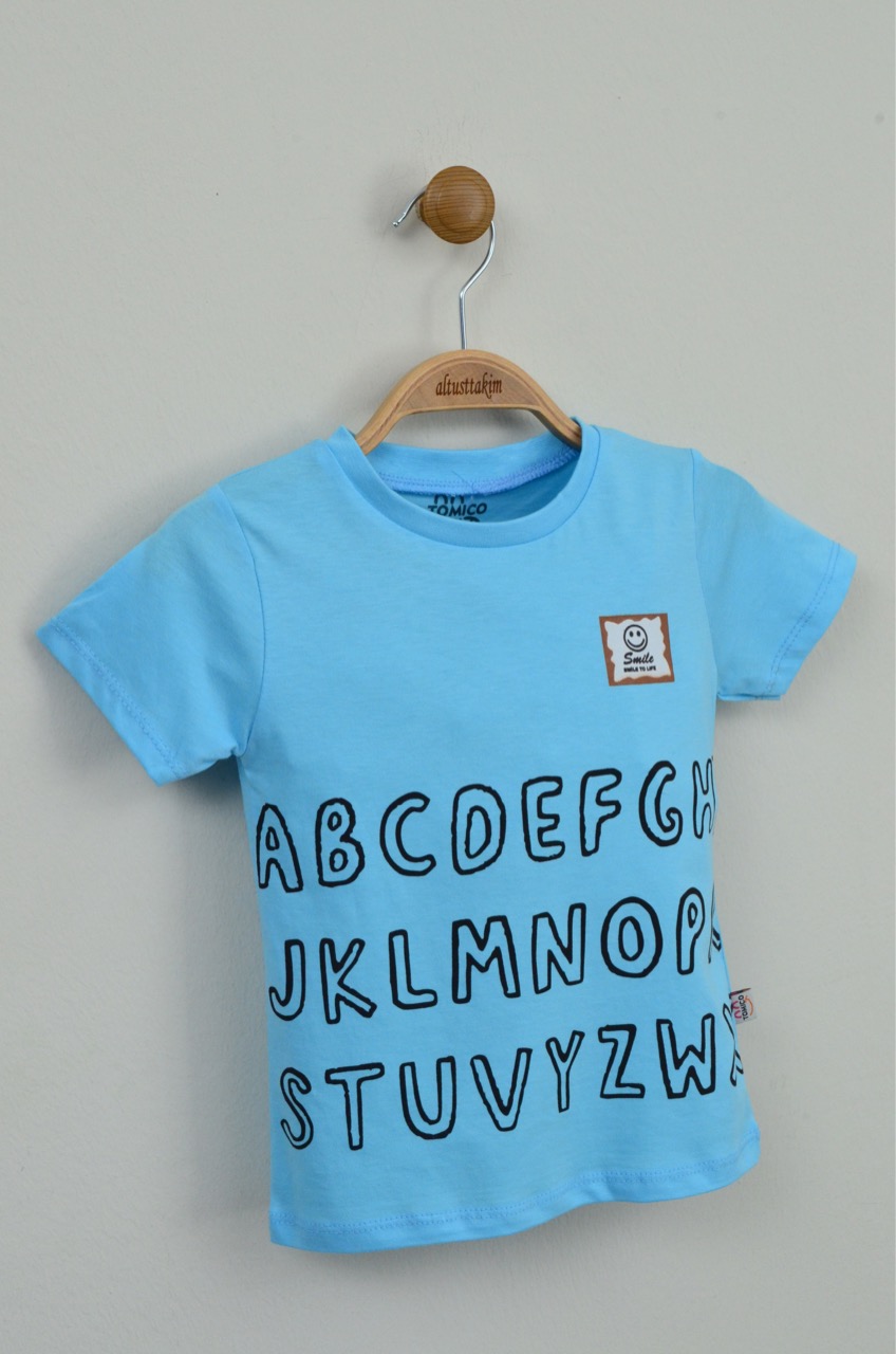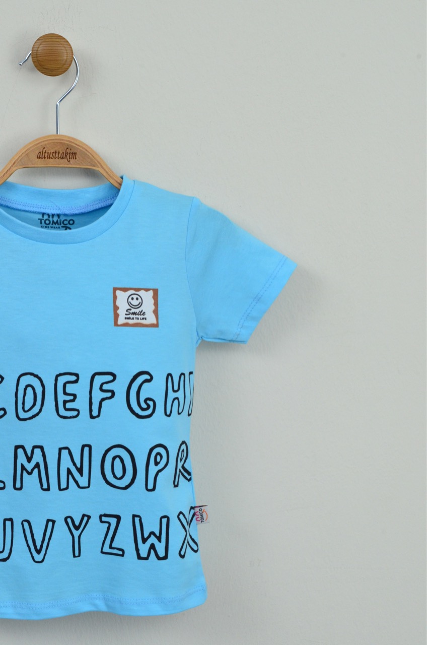 Açık Mavi Alfabe Baskılı Tişört ve Şort İki Parça Takım (1-4 Yaş)