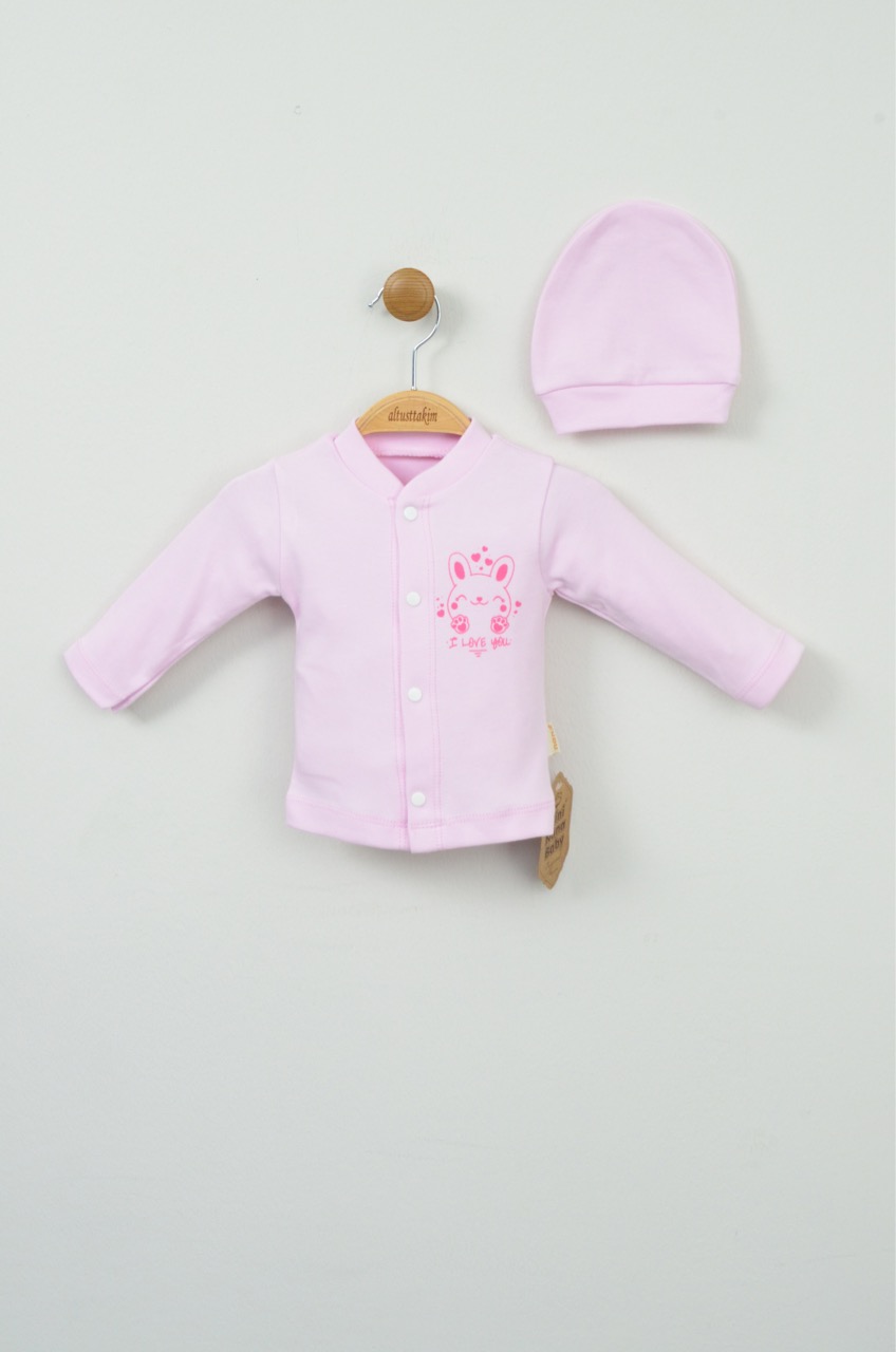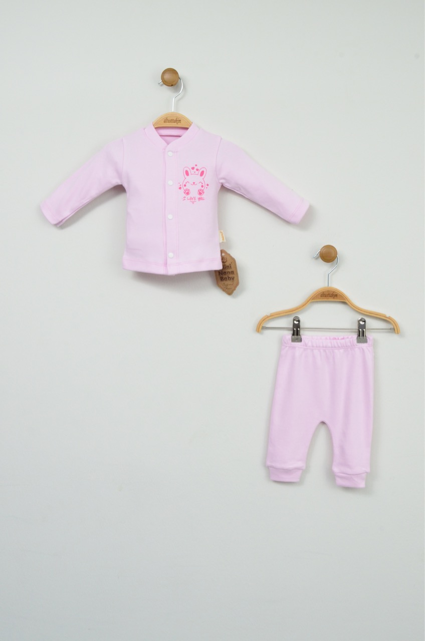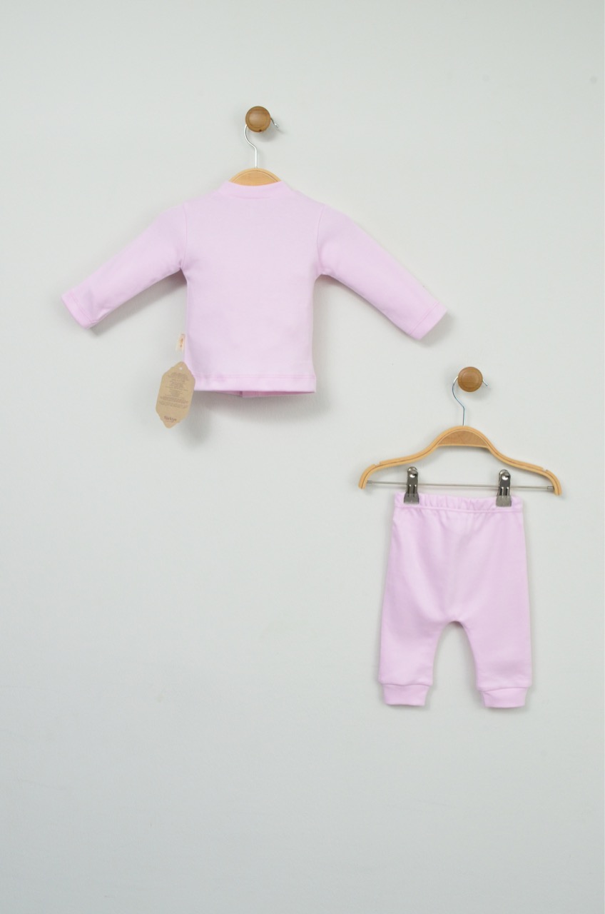 Bu sevimli açık pembe %100 pamuk yenidoğan ikili takım, bebeğinizin ilk günlerinde ihtiyaç duyacağı konforu ve şirinliği bir arada sunar. Tamamen pamuk içeriği sayesinde bebeğinizin cildine nazikçe dokunur.