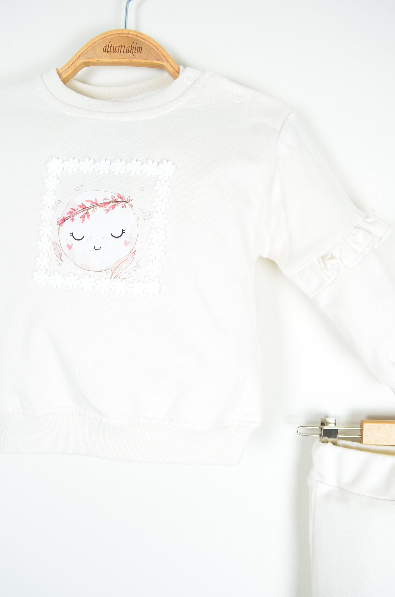 BEBEKLİ FIRFIRLI KREM ALT ÜST TAKIM (12-24 AY)