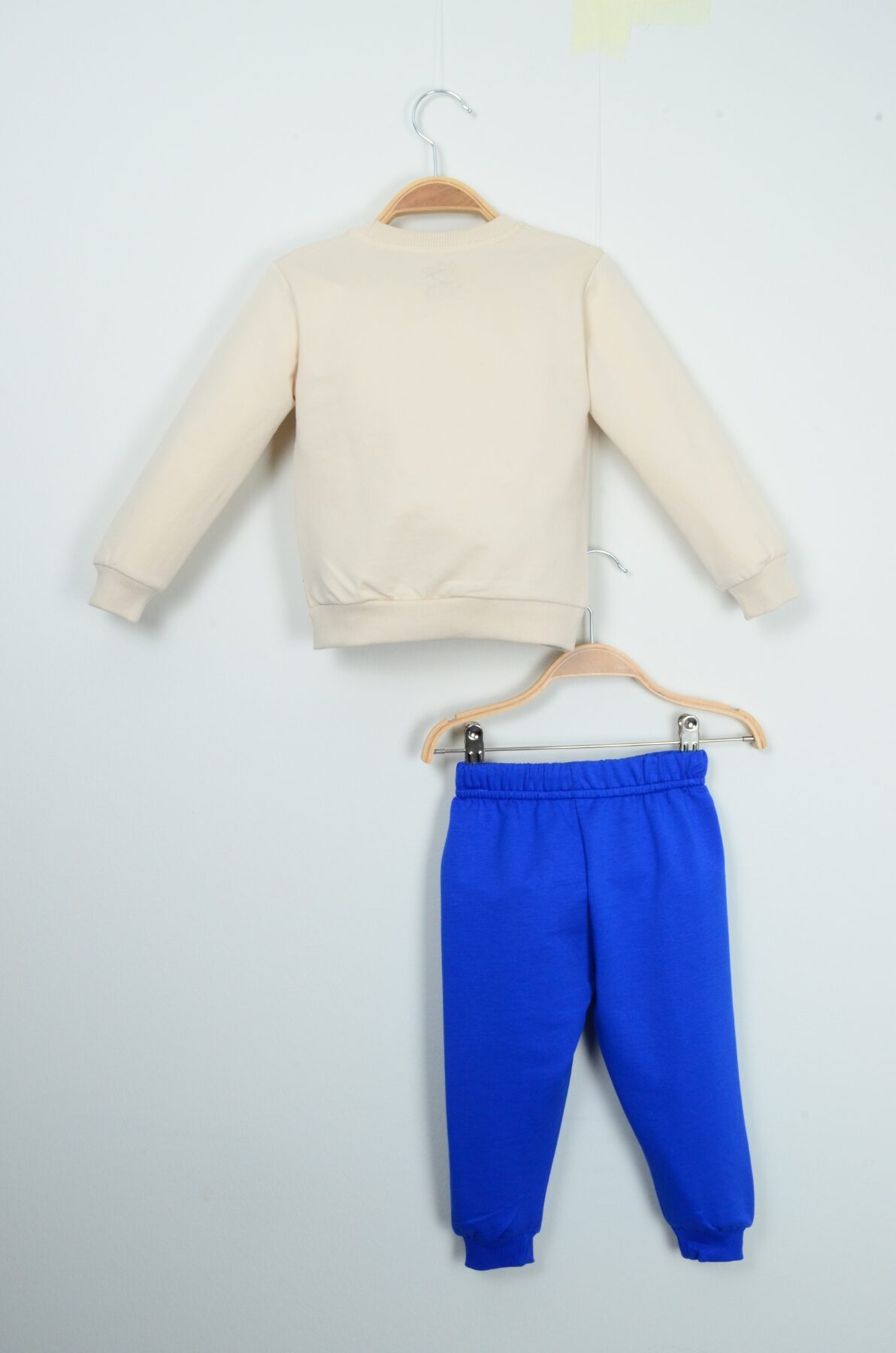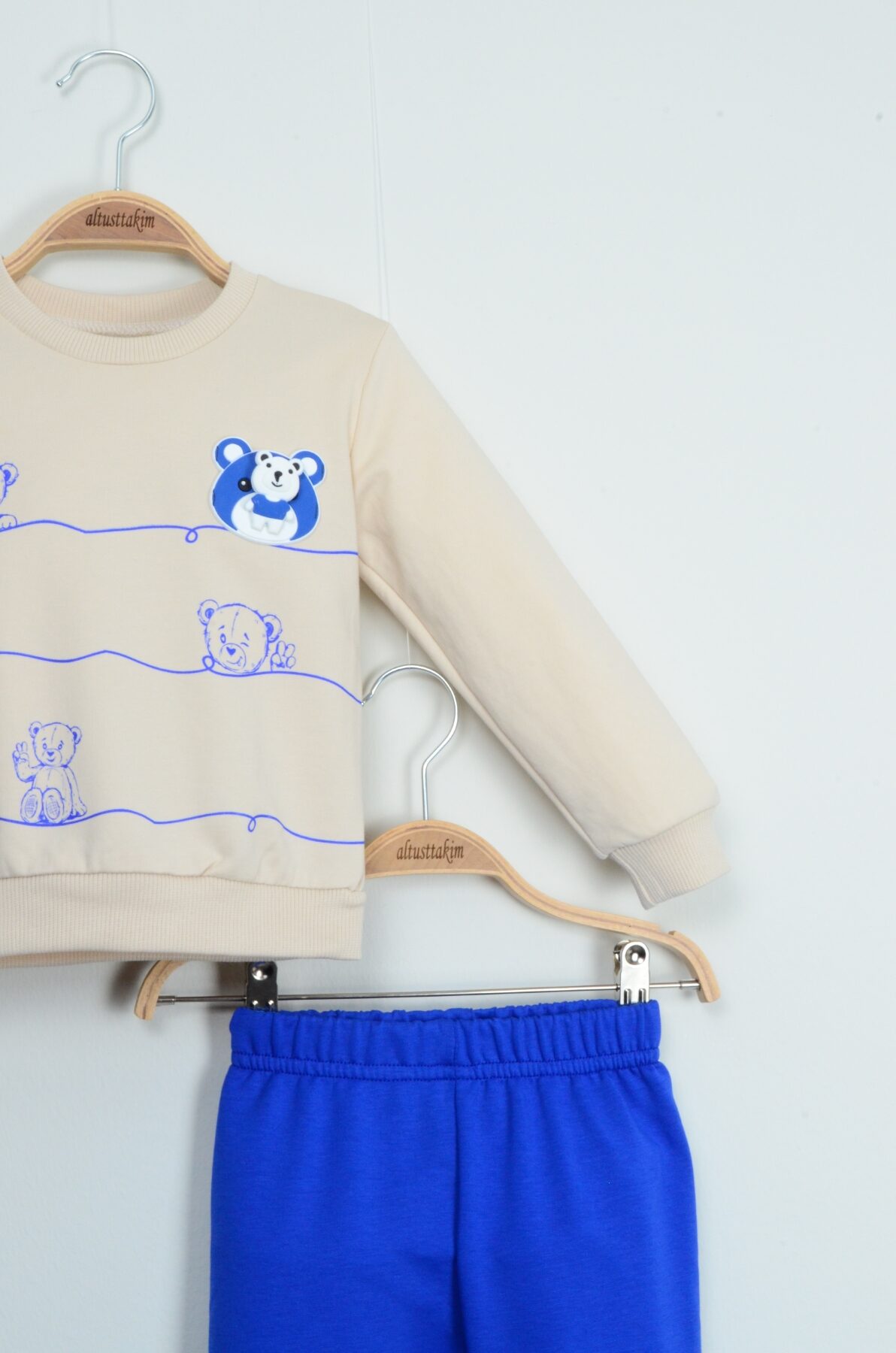 Bej Ayıcık Baskılı Mavi İki Parça Takım