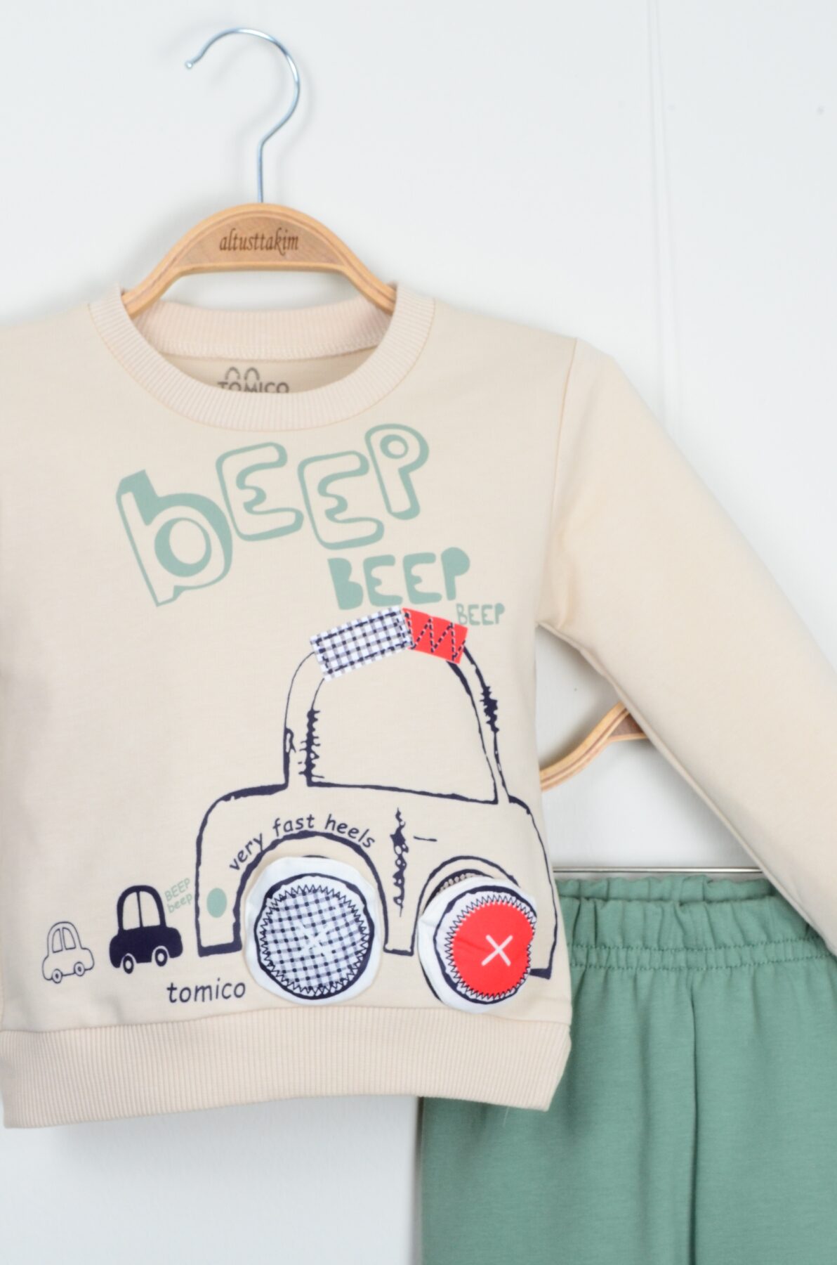Bej “Beep Beep” Arabalı Baskılı İki Parça Takım