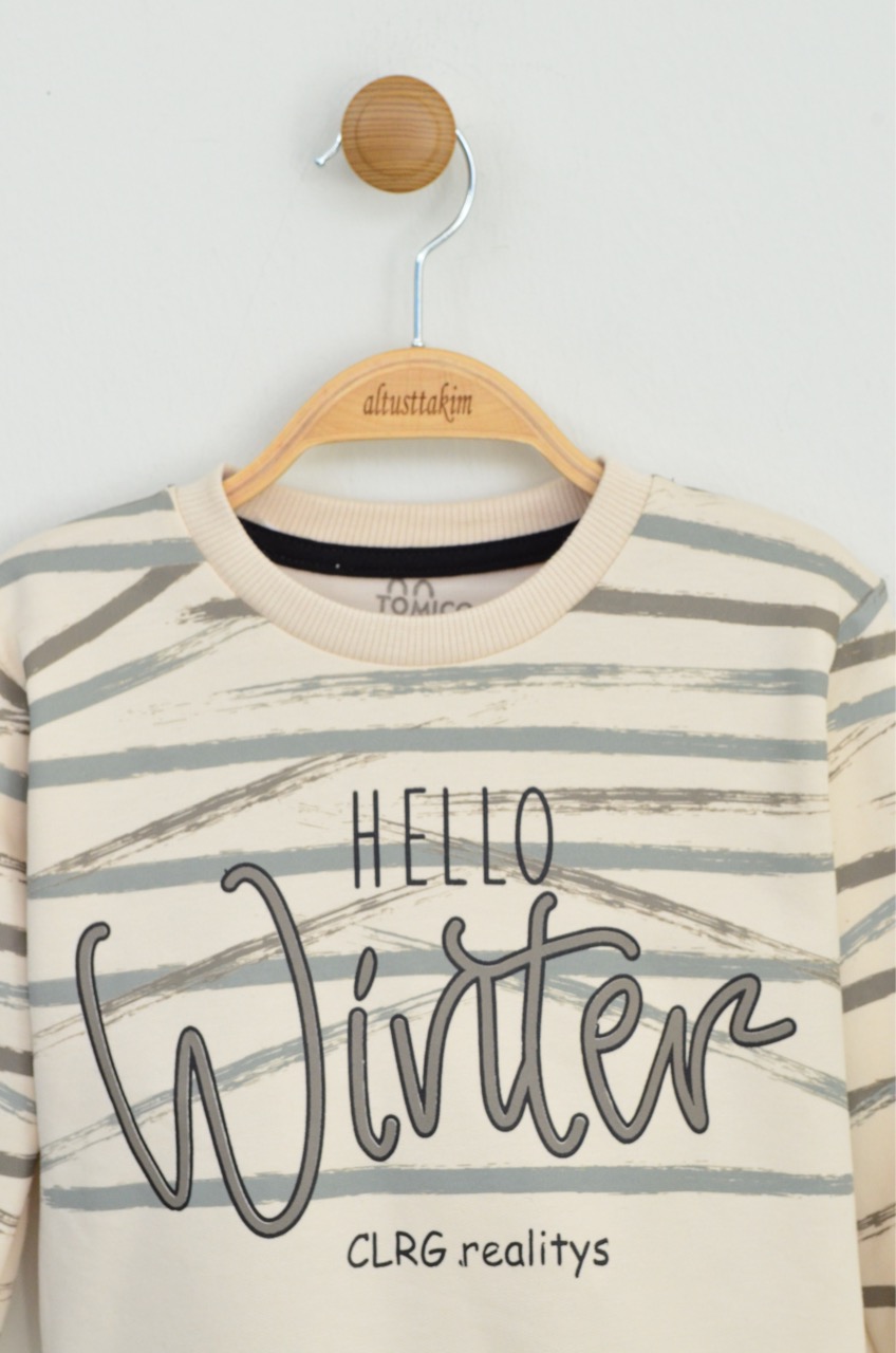 Bej “Hello Winter” Baskılı İki Parça Takım (3-6 Yaş)