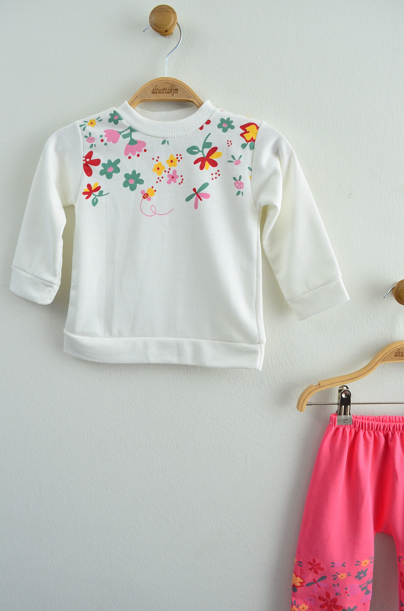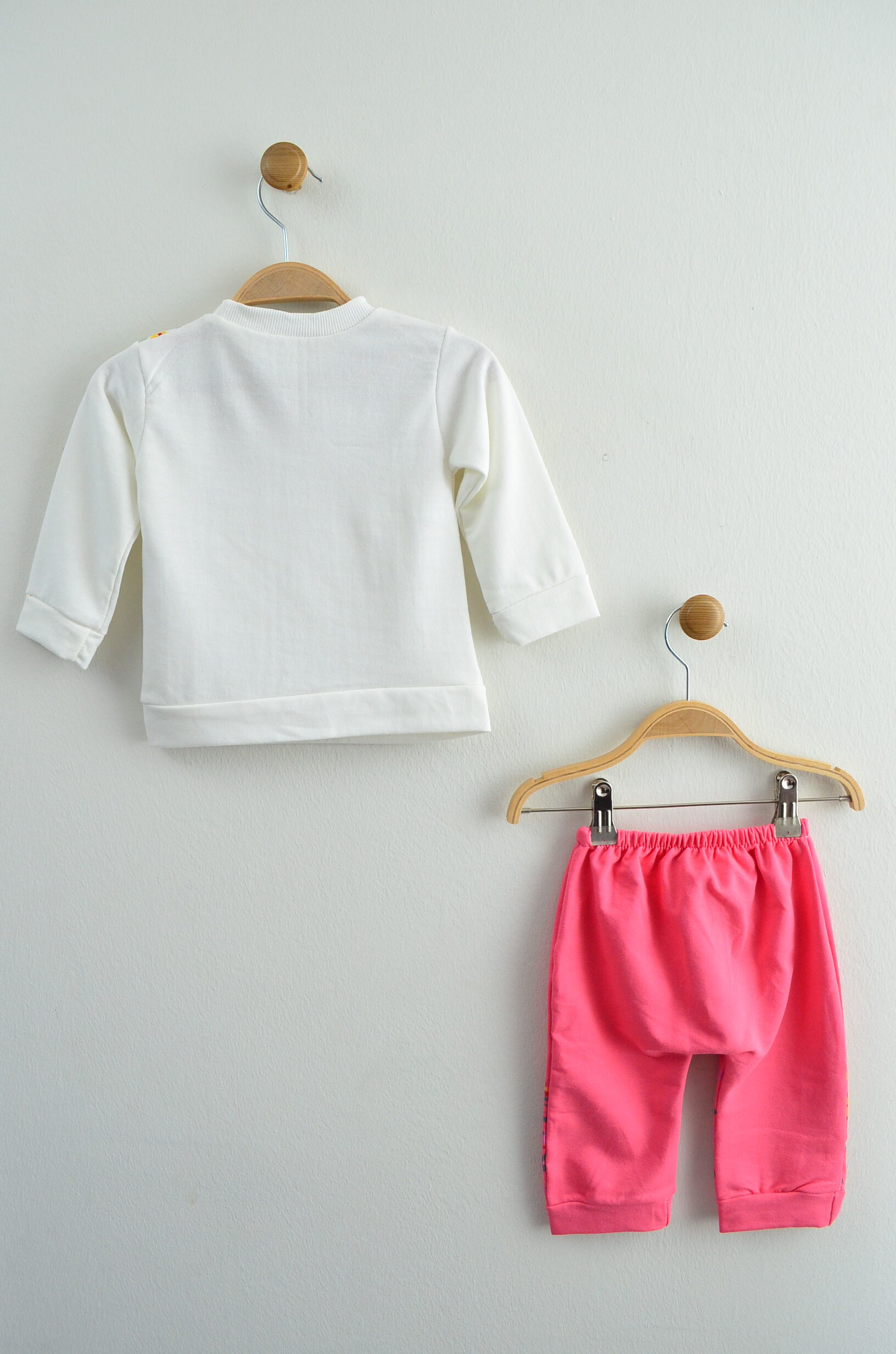 Bu iki parçalı takım, 6-24 aylık kız çocuklarınızın yaz aylarında konforlu ve şık olması için tasarlandı. Beyaz tişörtün üzerindeki renkli çiçek ve kelebek desenleri, canlı pembe şortun paçalarındaki uyumlu çiçek detaylarıyla birleşerek sevimli ve enerjik bir görünüm sunar. %100 pamuk ince kumaş içeriği sayesinde hassas bebek cildine dosttur ve nefes alabilen yapısıyla sıcak havalarda ideal bir tercihtir.