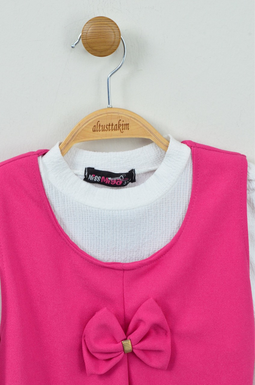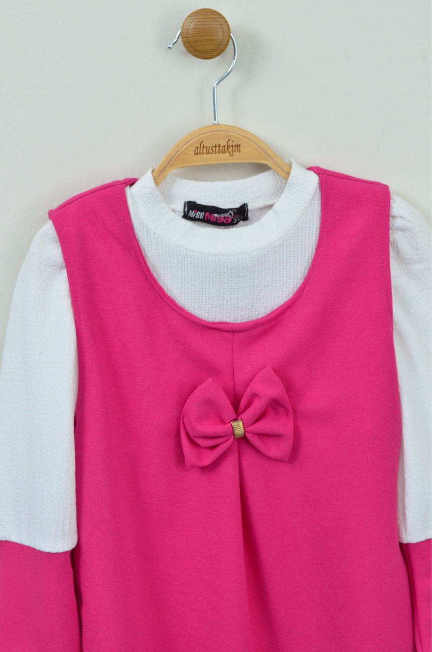 Canlı Pembe Fiyonklu Elbise (3-7 Yaş Kız Çocuk)