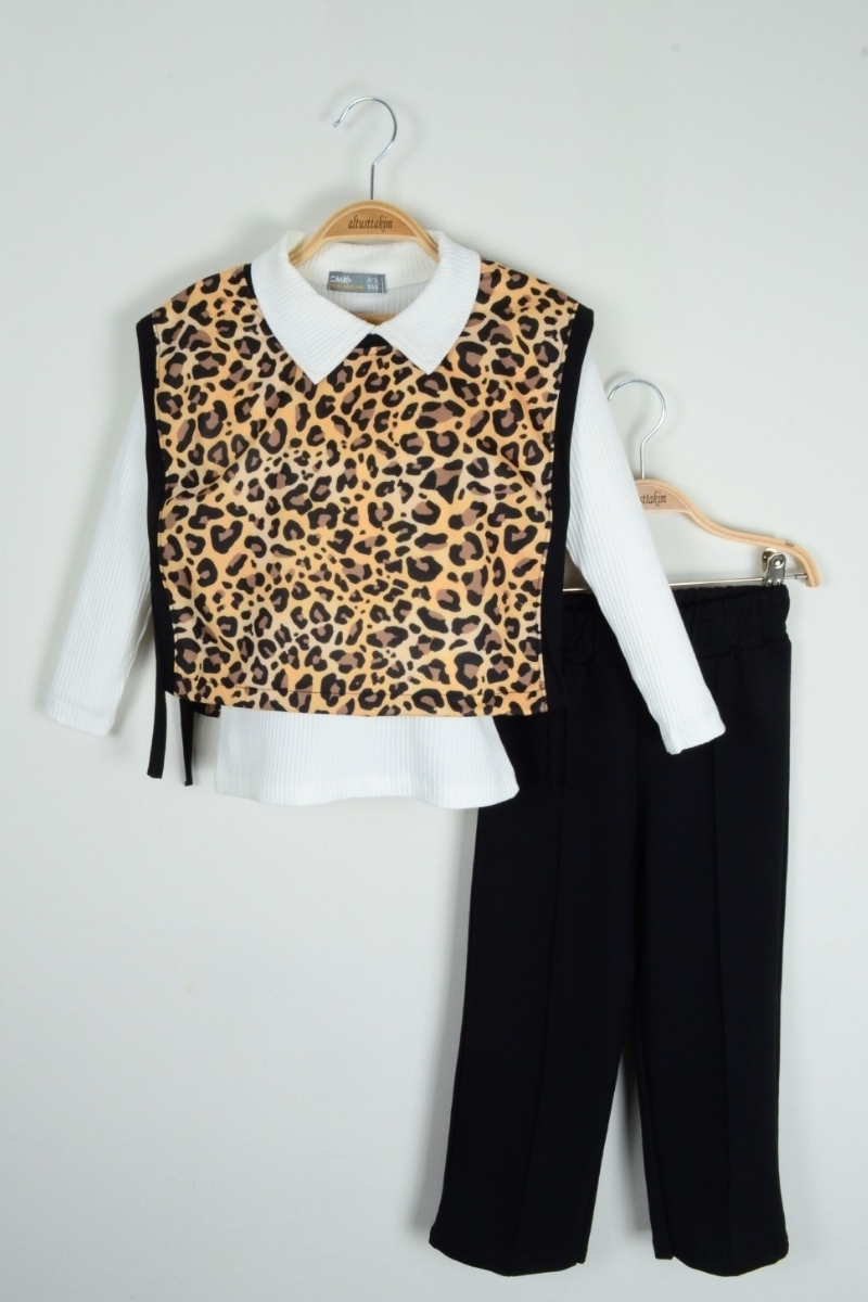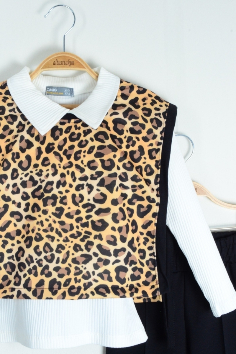 CMK Premium Leopar Desenli Kız Çocuk Kıyafet Seti  4-11 Yaş