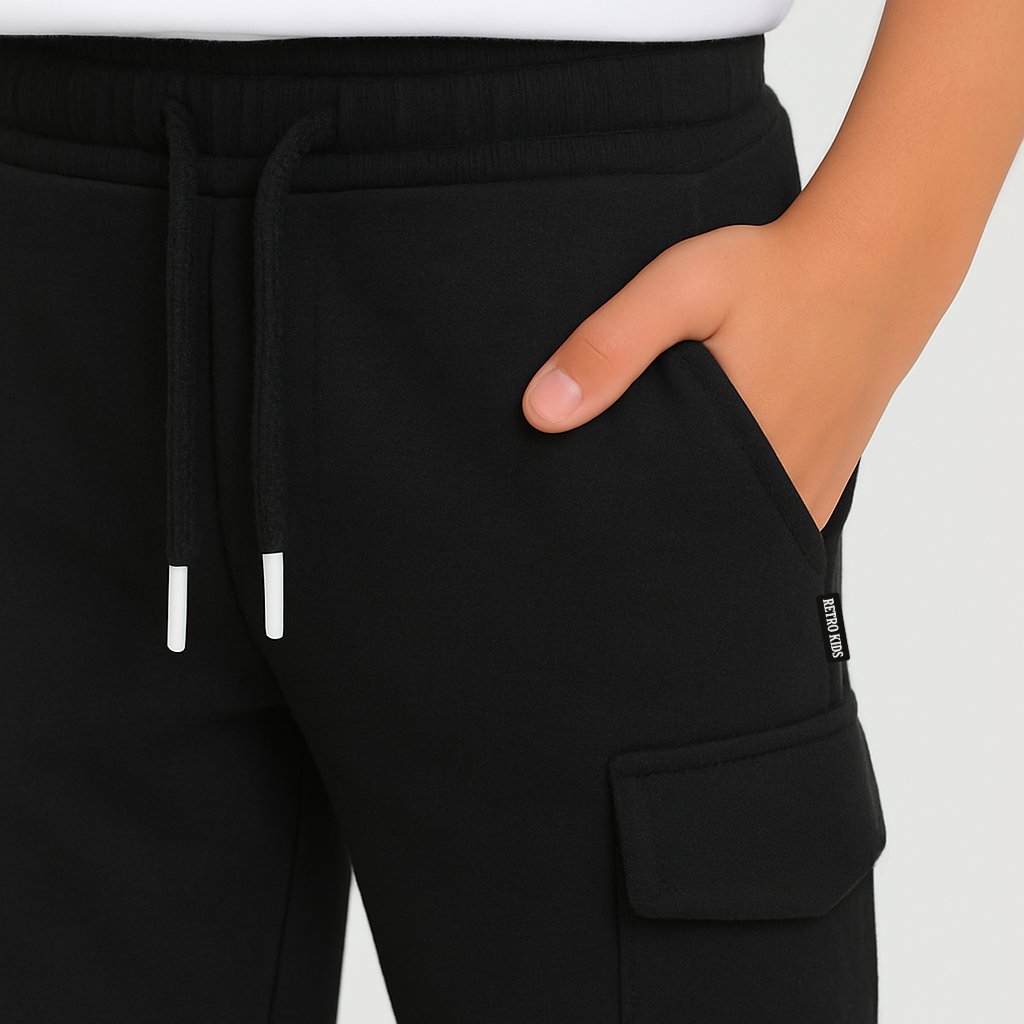 Bu eşofman altı, 4-12 yaş arası erkek çocuklarınızın hem okulda hem de günlük aktivitelerinde rahat ve şık bir stil sergilemesi için tasarlandı. Siyah rengi ve kargo cepleri sayesinde modern bir görünüm sunarken, yumuşak ve esnek kumaşı sayesinde gün boyu konfor sağlar. Paça kısımlarındaki lastik detayı, hareket özgürlüğünü artırır ve sportif bir hava katar.