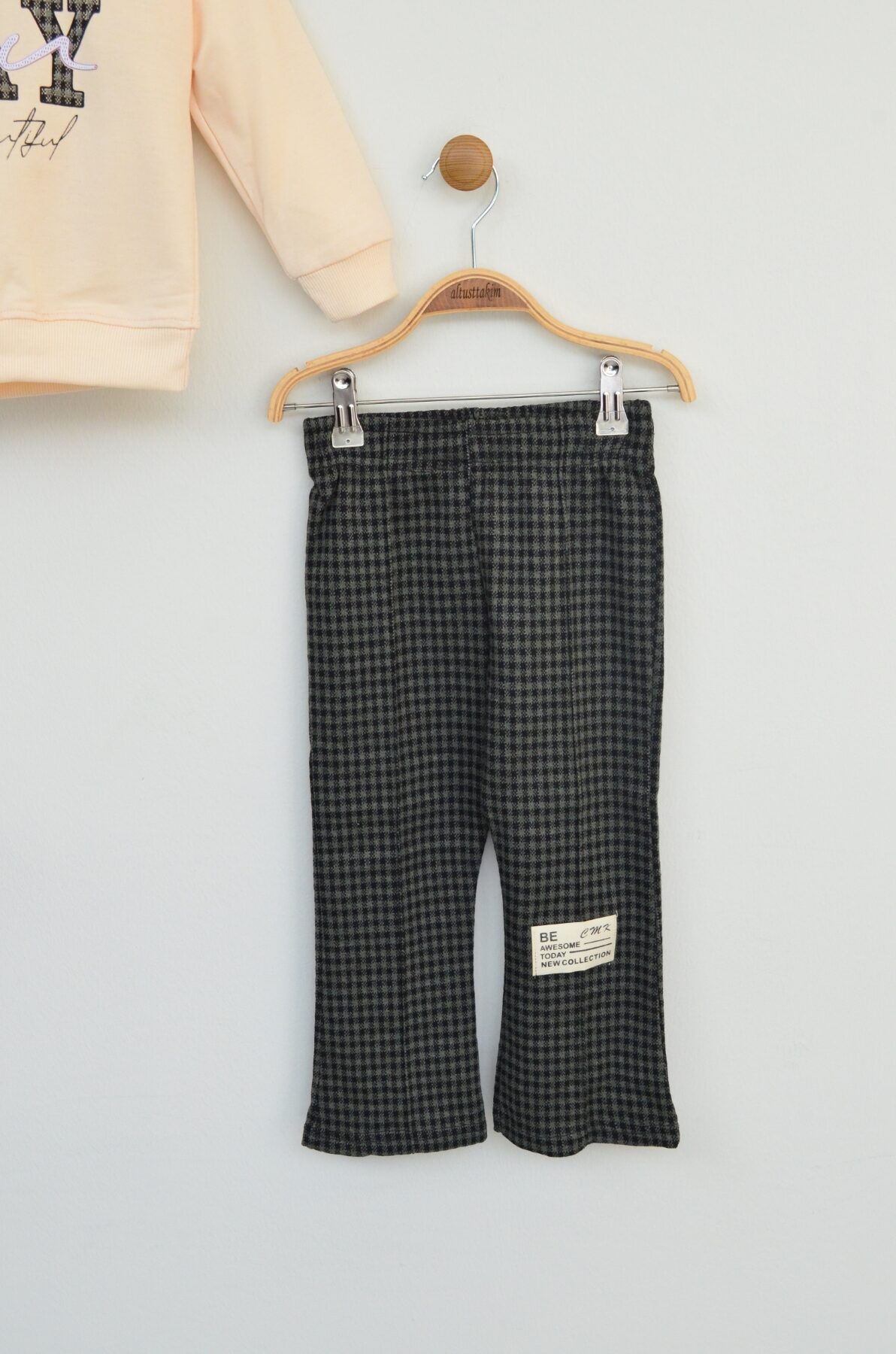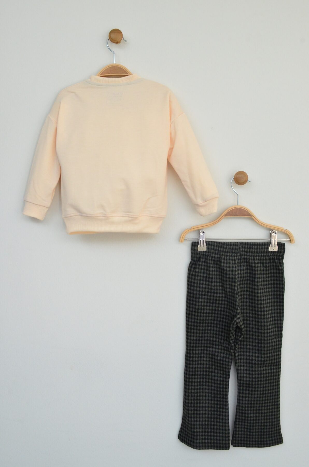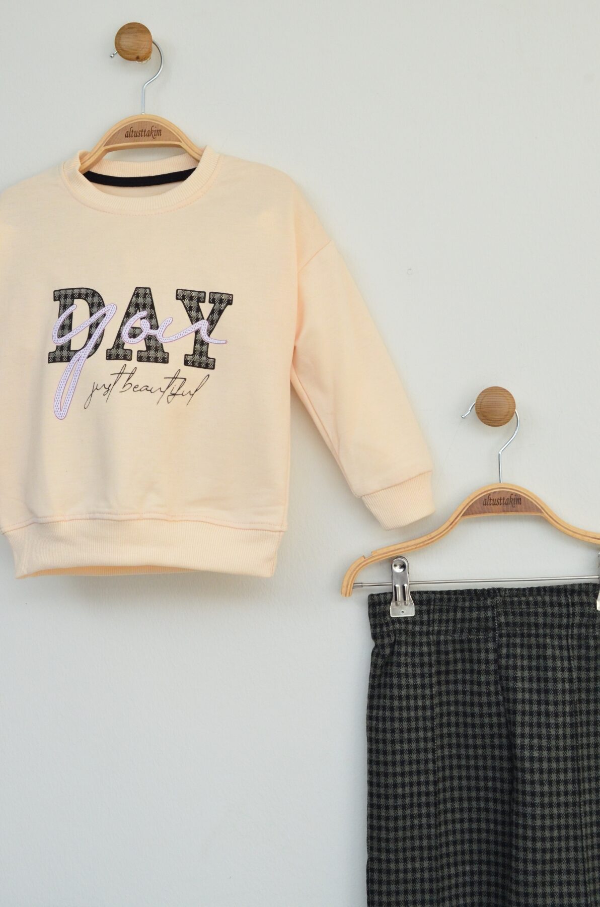 Ekru “Day Beauty Be” Baskılı Ekose İki Parça Takım