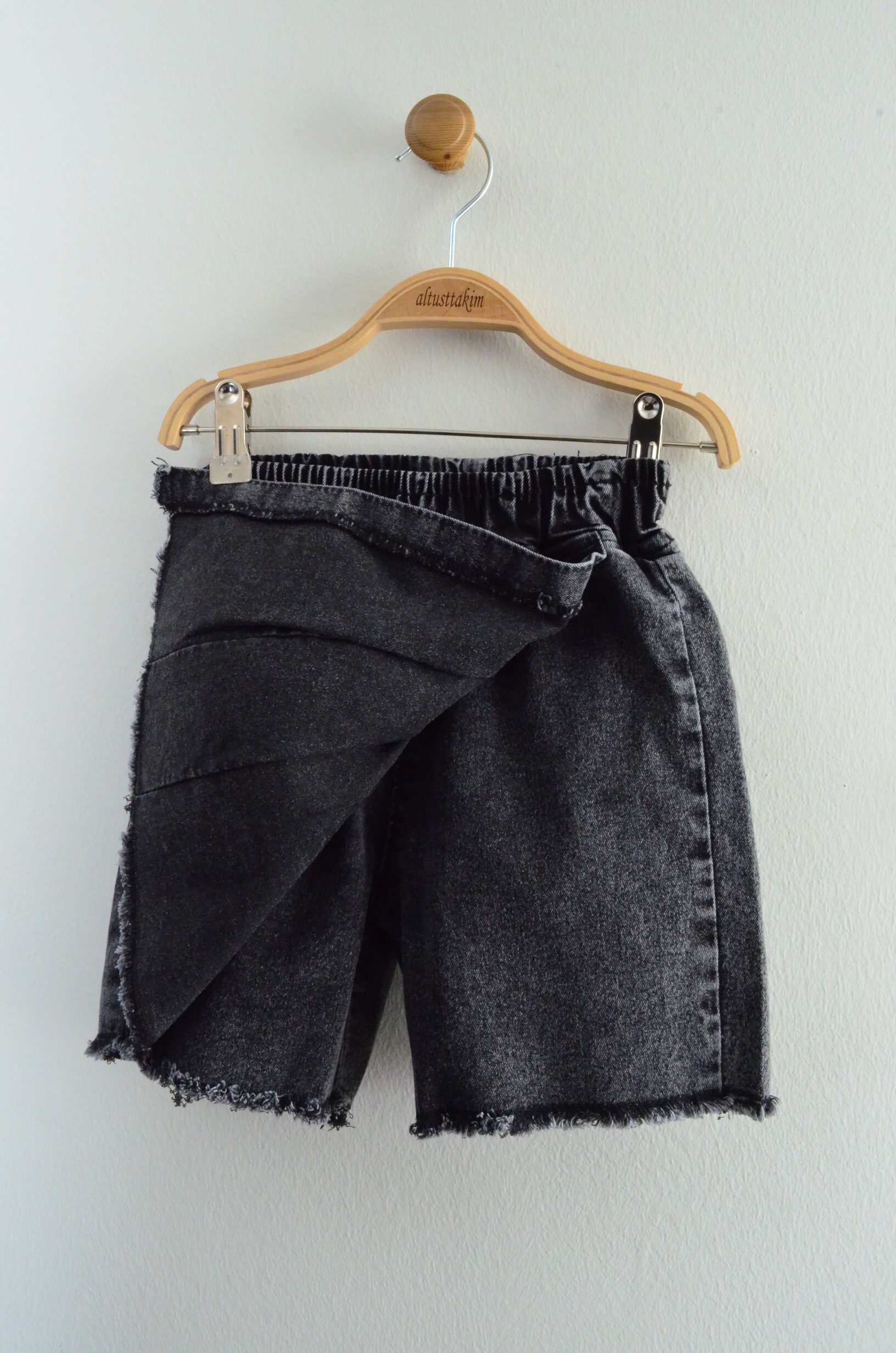 Rengarenk ve enerjik bu kız çocuk kot şort etek takımı, miniklerin yaz kombinlerine neşe katacak.
