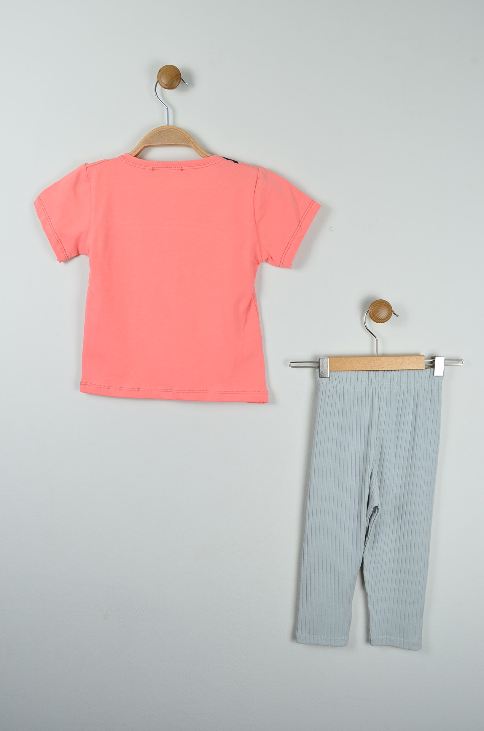 Takımın alt parçası olan açık gri renkli tayt ise, dikey fitilli dokusuyla modern bir hava katıyor. Esnek ve yumuşak yapısıyla hareket özgürlüğü sağlayan bu tayt, tişörtün renkli tasarımını zarifçe dengeliyor. İnce ve nefes alabilen kumaş içeriği sayesinde, çocuklarınız sıcak havalarda maksimum konfor yaşar.