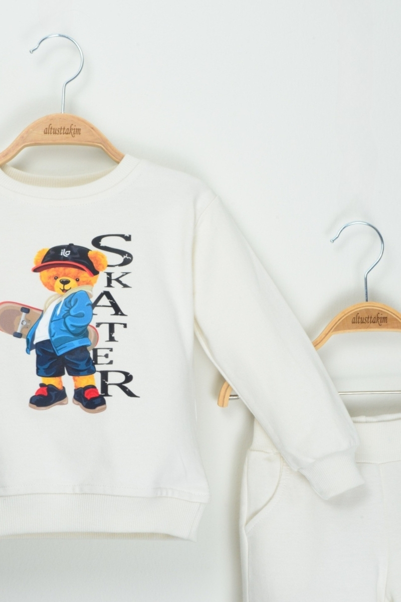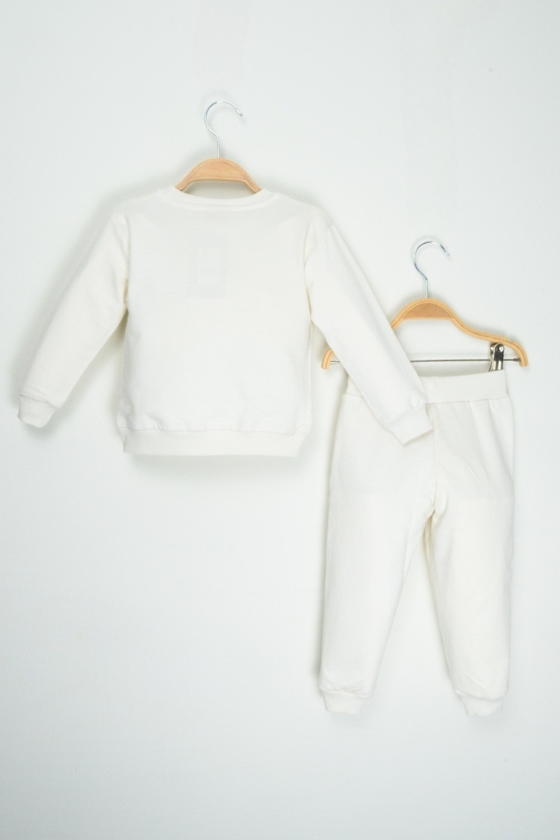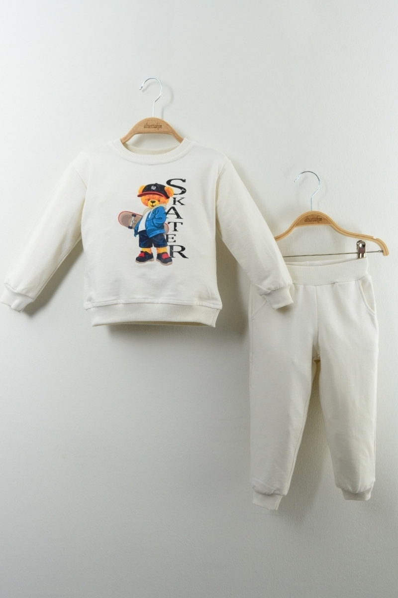 İLO İKİ İPLİK AYICIK BASKILI BEYAZ RENK ALT ÜST TAKIM (2-5 YAŞ)