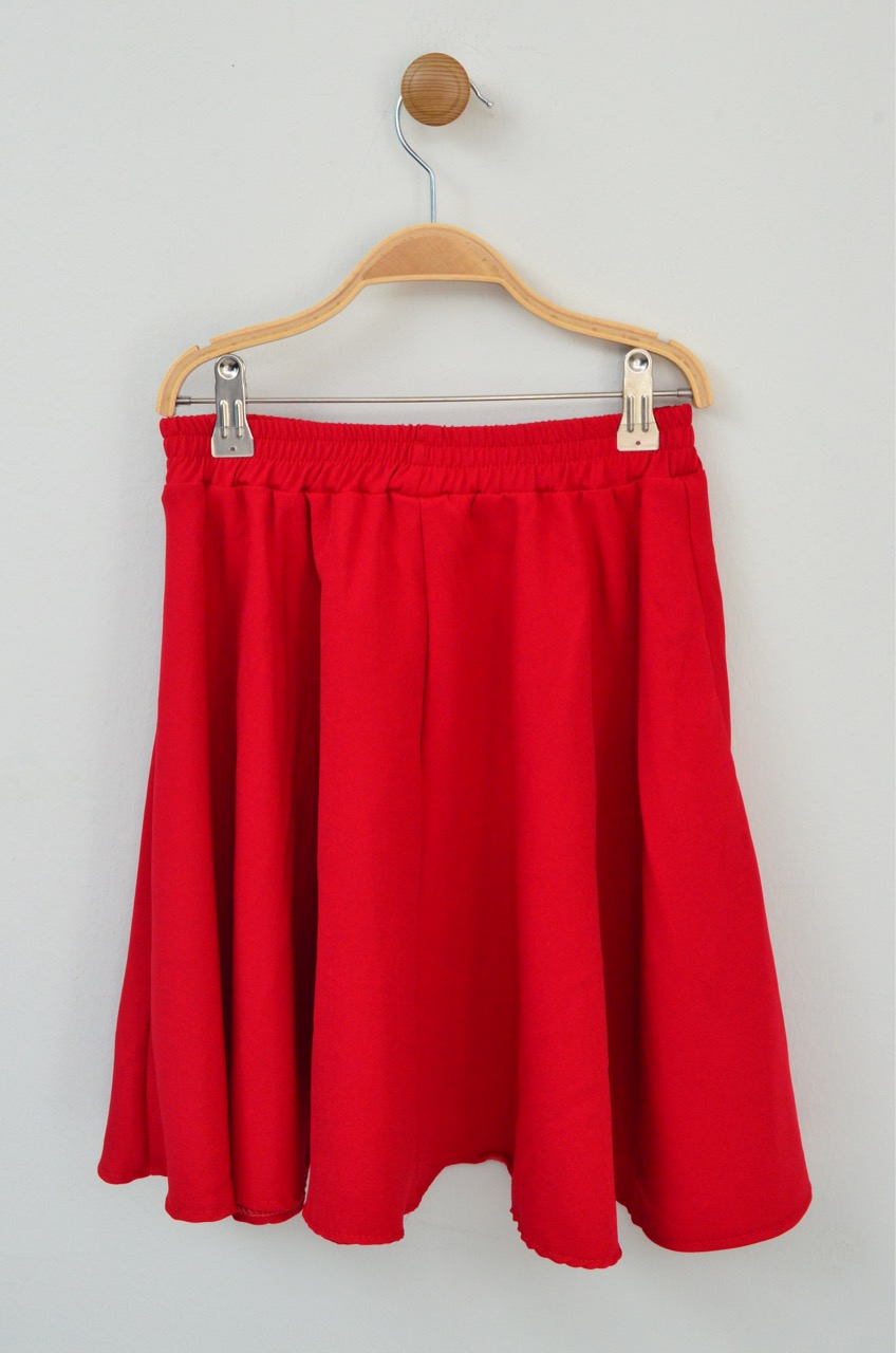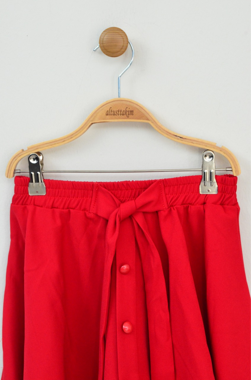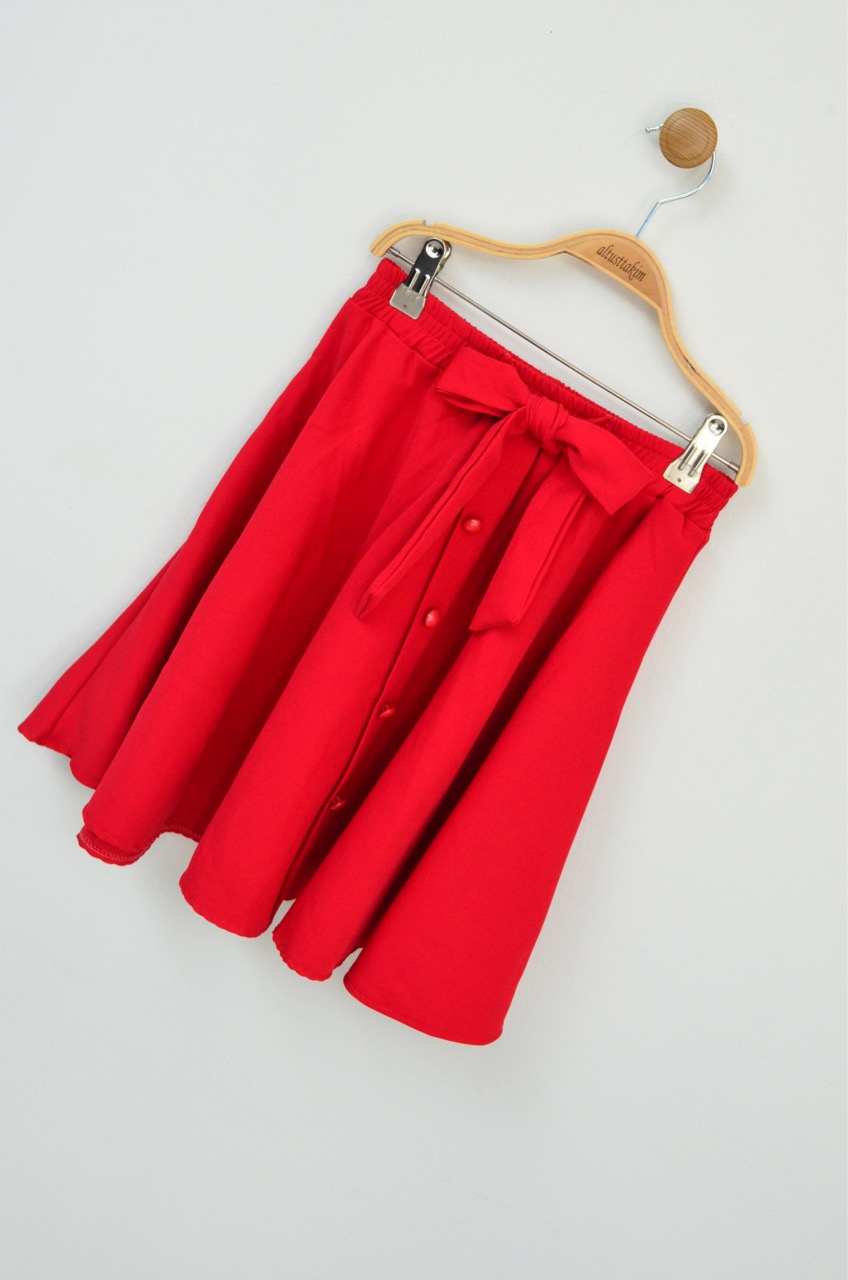 Kırmızı Bağlama Detaylı Düğmeli Kız Çocuk Etek (5-16 Yaş)
