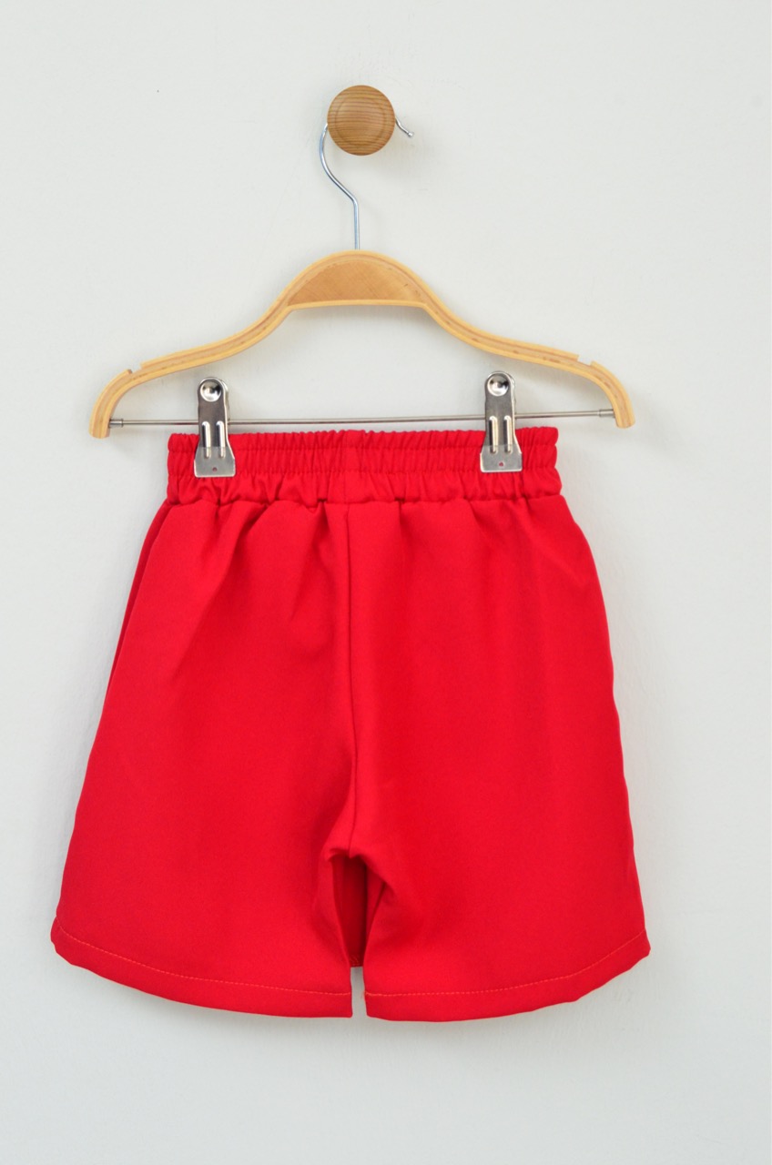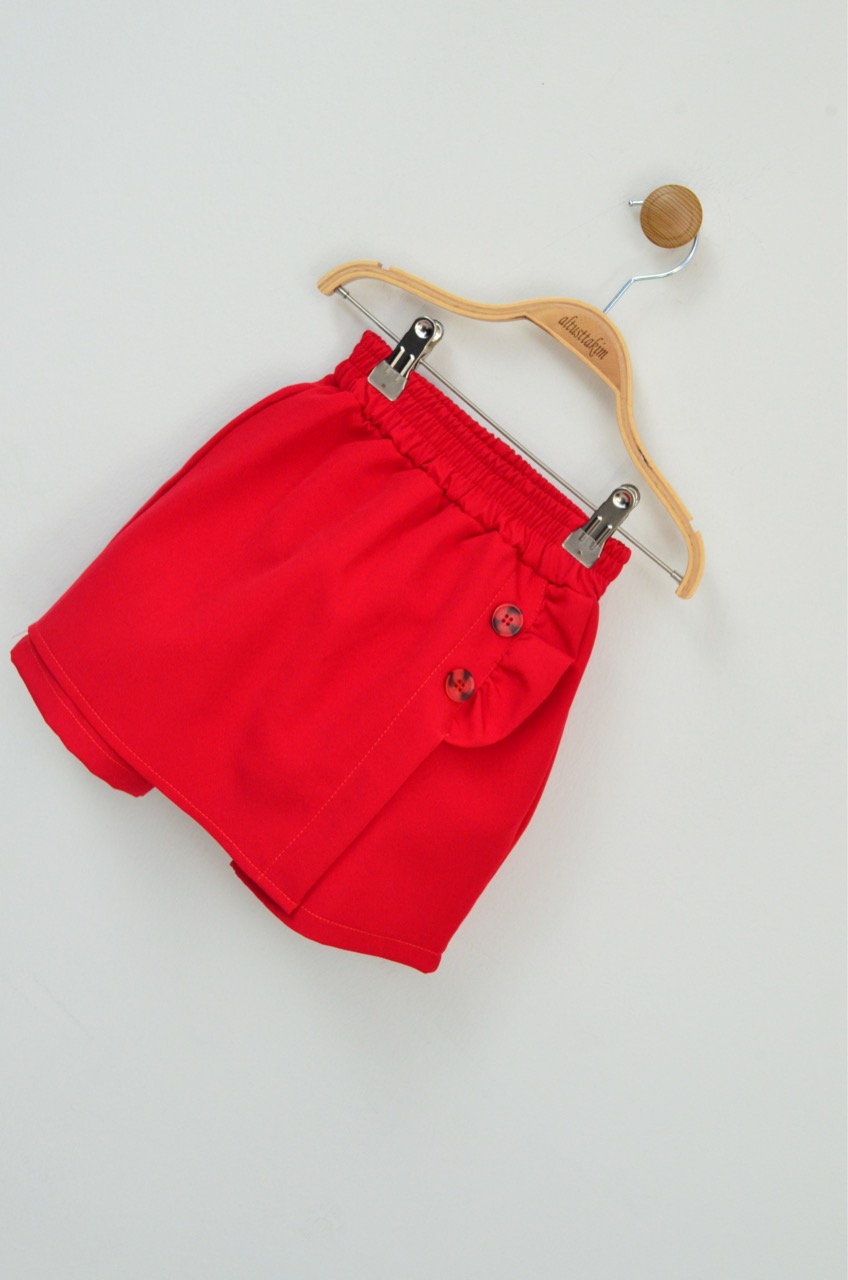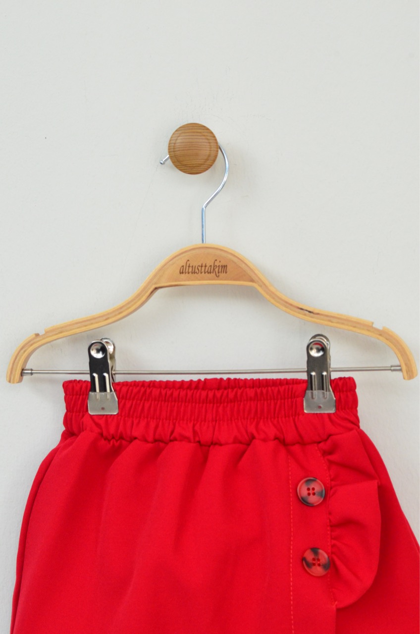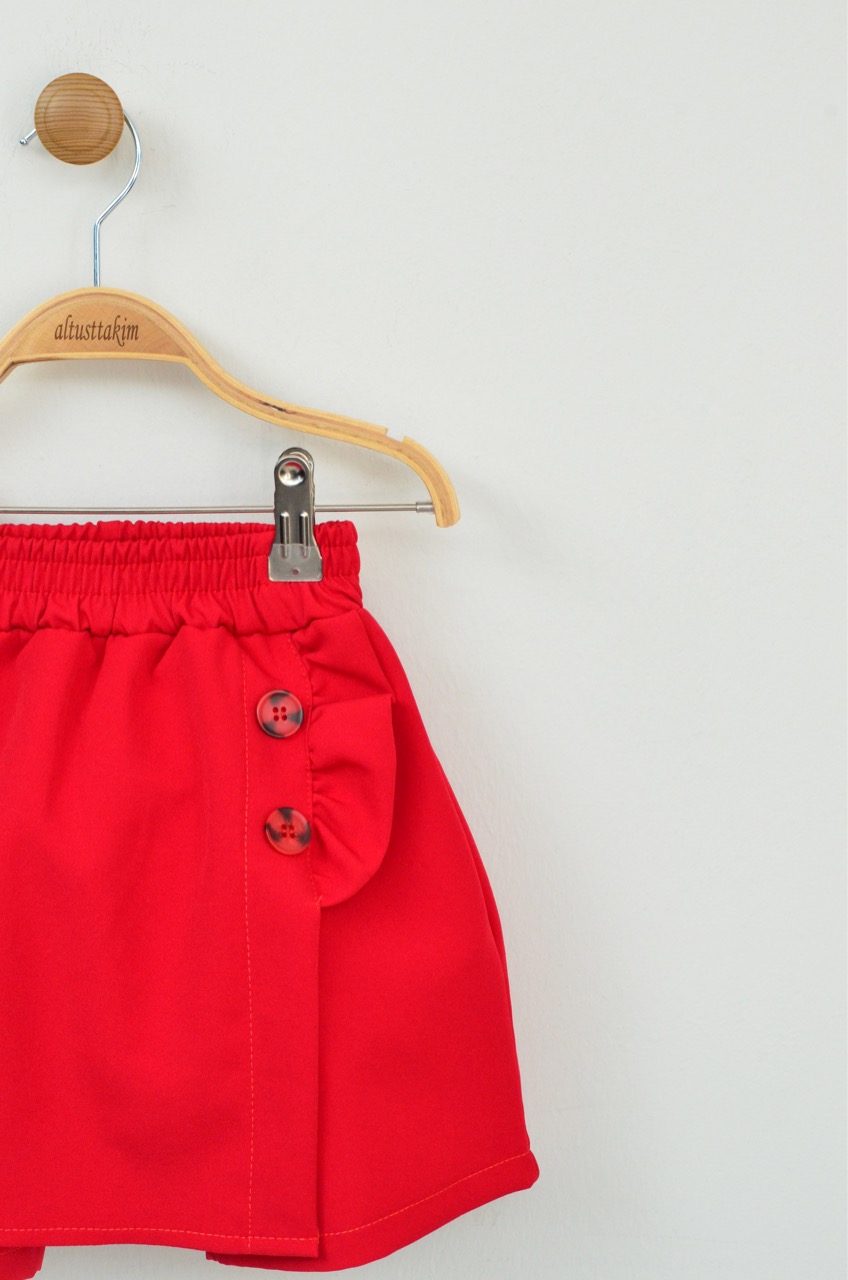 Kırmızı Fırfırlı Düğme Detaylı Kız Çocuk Şort Etek (5-16 Yaş)