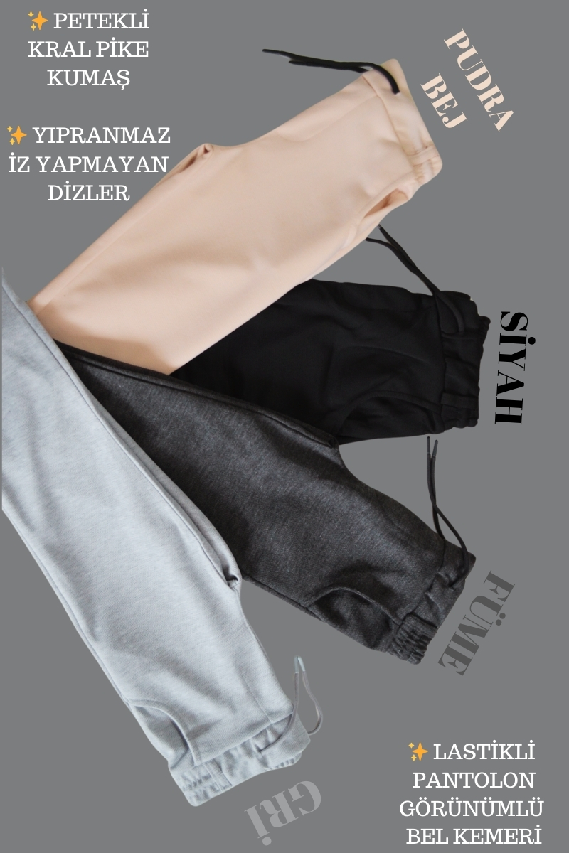 - Özellikler: Bel kısmı lastikli ve bağcıklı, yan cepli, rahat kesim
