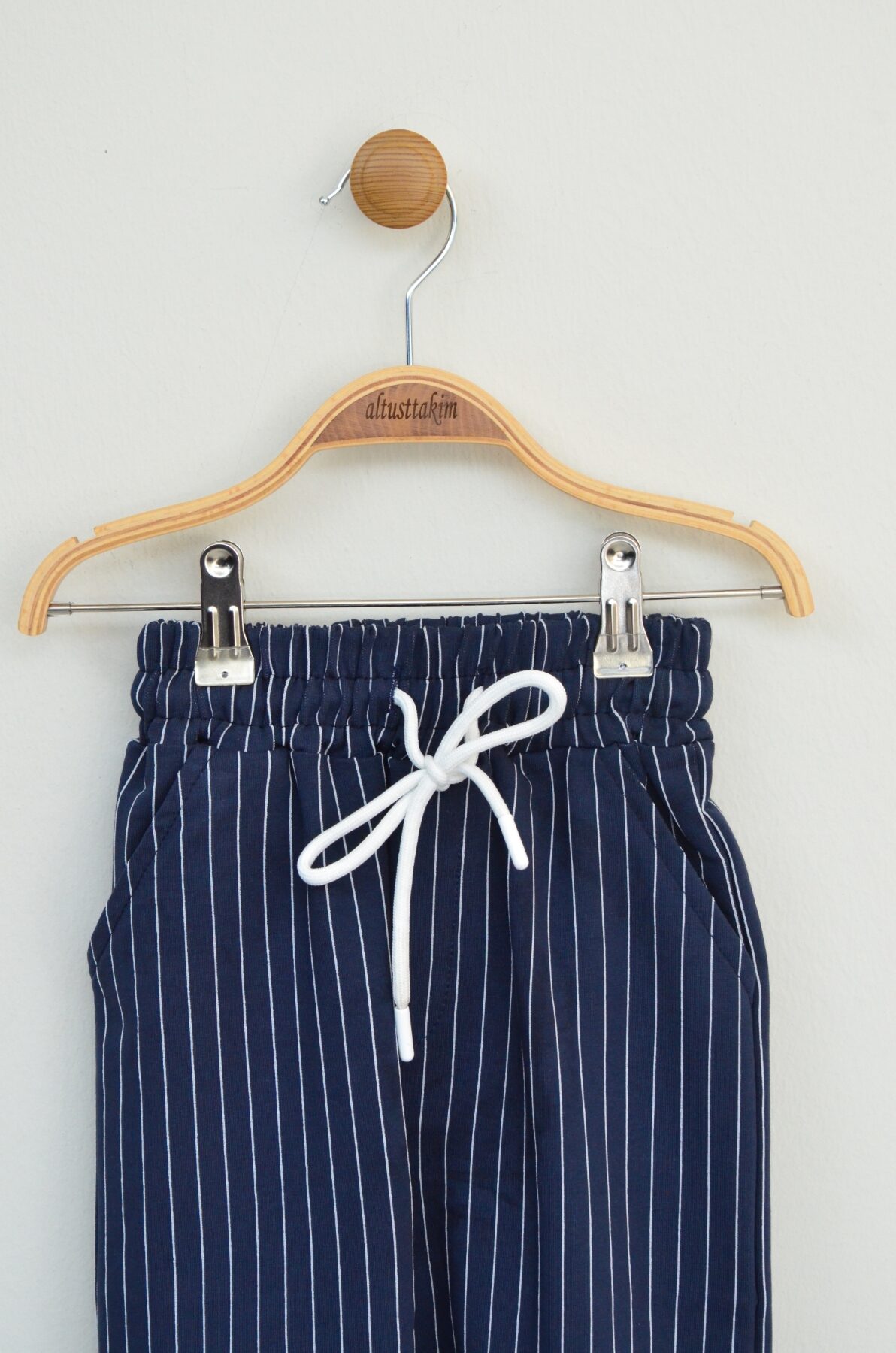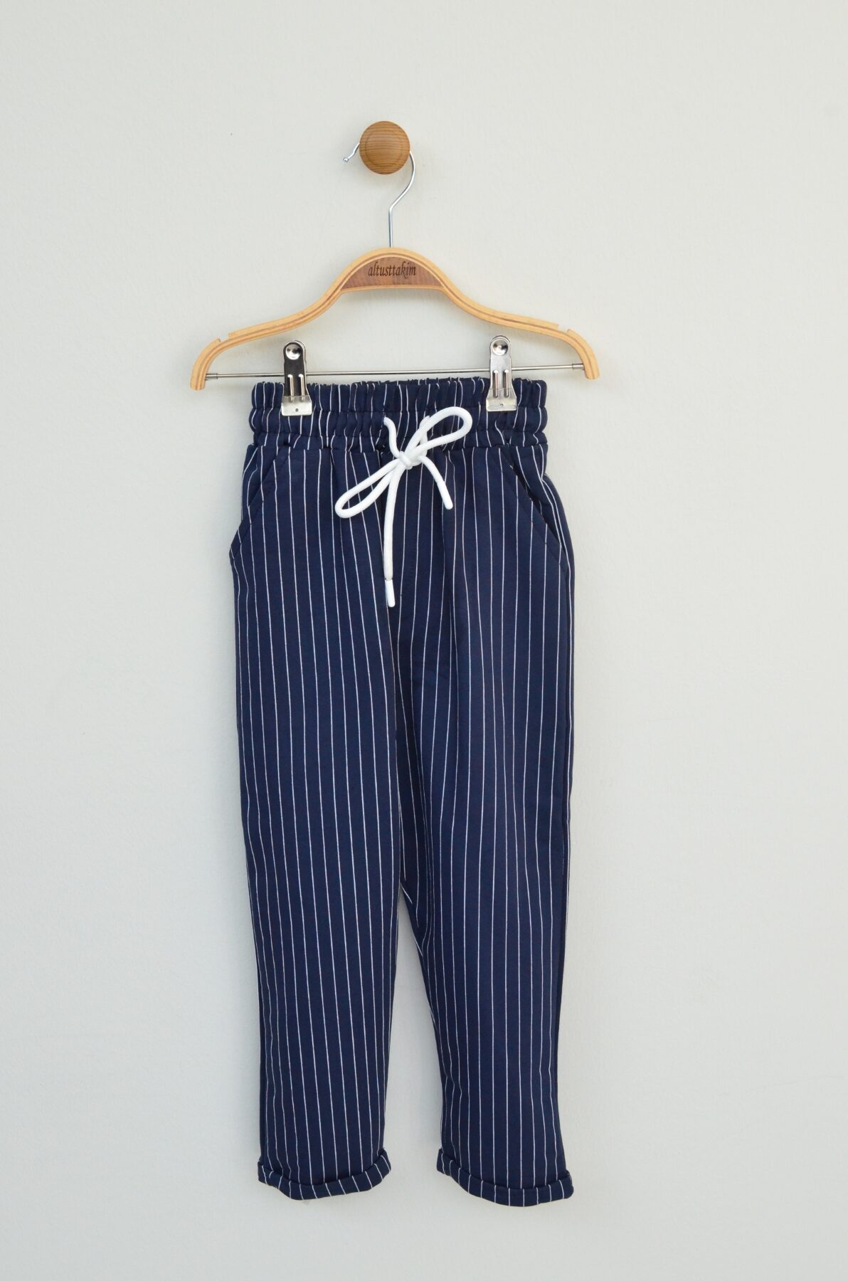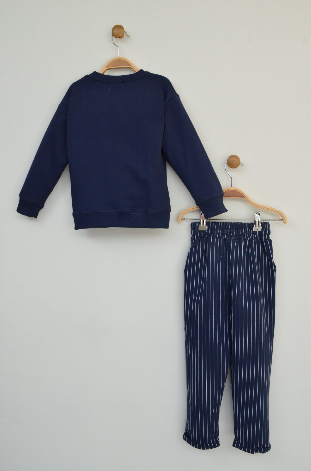 Miniklerin günlük hayatında hem rahat hem de şık olmasını sağlayacak bu iki parça takım, lacivert rengi ve çizgili deseniyle dikkat çekiyor. Yumuşacık pamuklu kumaşı sayesinde çocuğunuz gün boyu konforlu hissederken, modern tasarımıyla da göz kamaştıracak.
