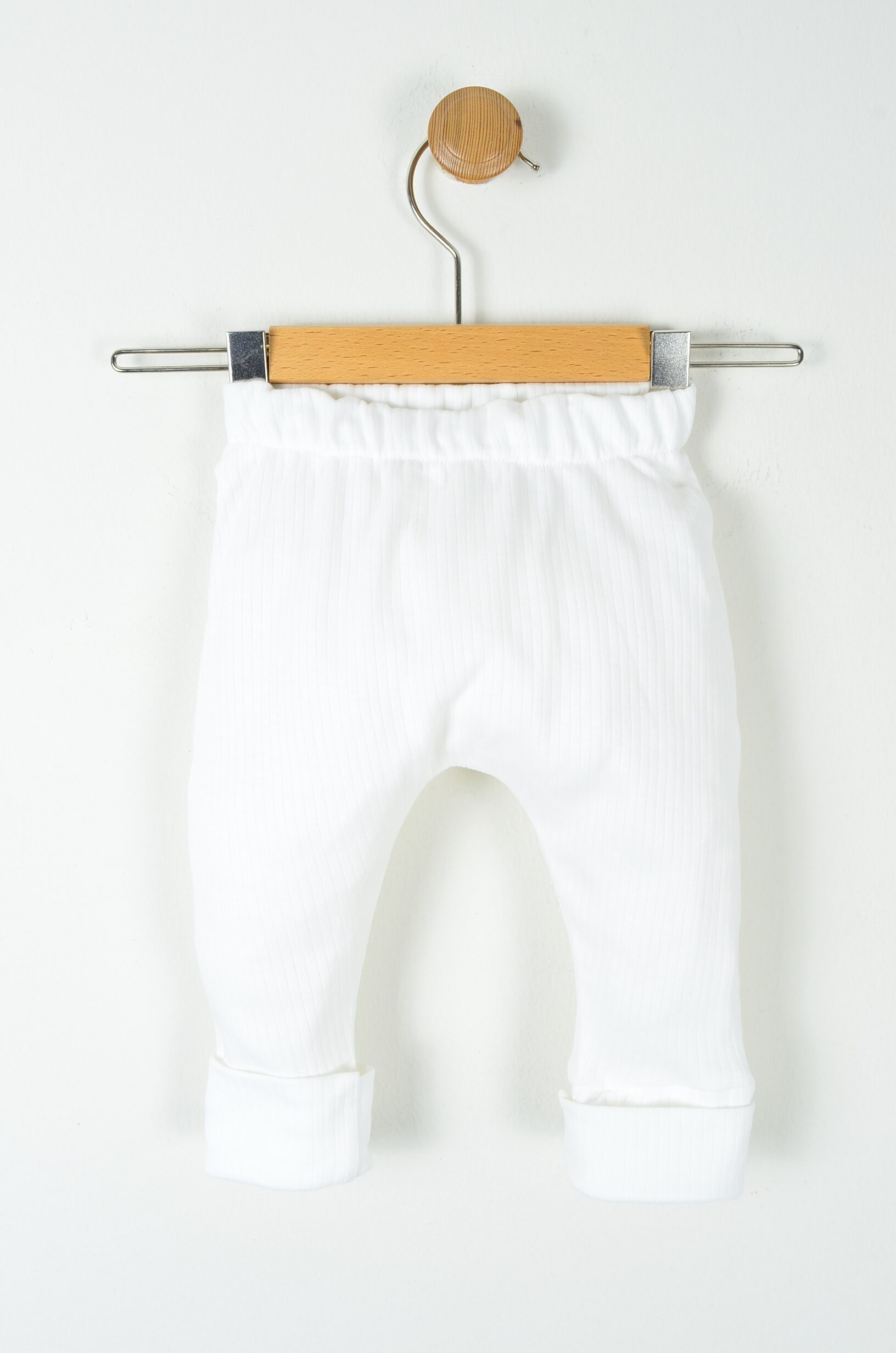 - Tayt: Belden lastikli, rahat kesim, düz beyaz, ribanalı.