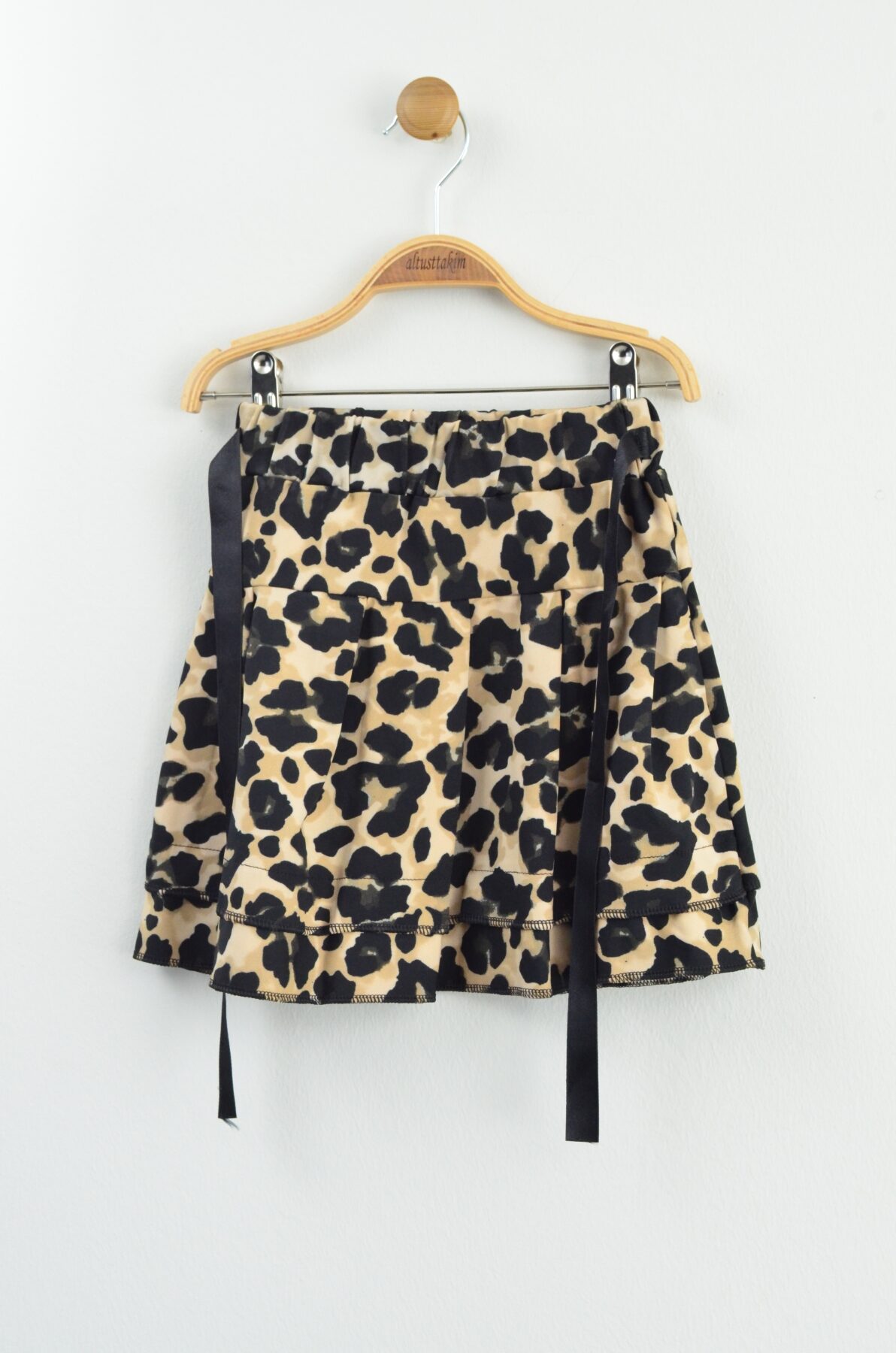 Minik hanımlar için şıklık ve zarafeti bir araya getiren Leopar Desenli Etek & Badi Takımı ile göz alıcı bir tarz oluşturun! 🖤✨