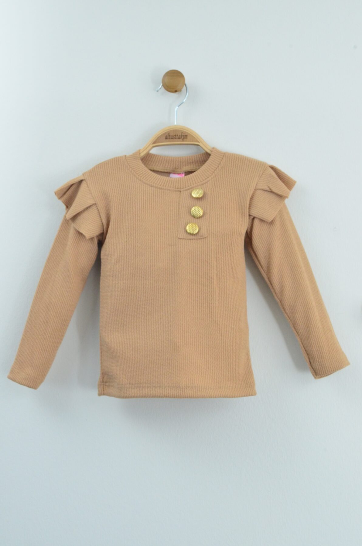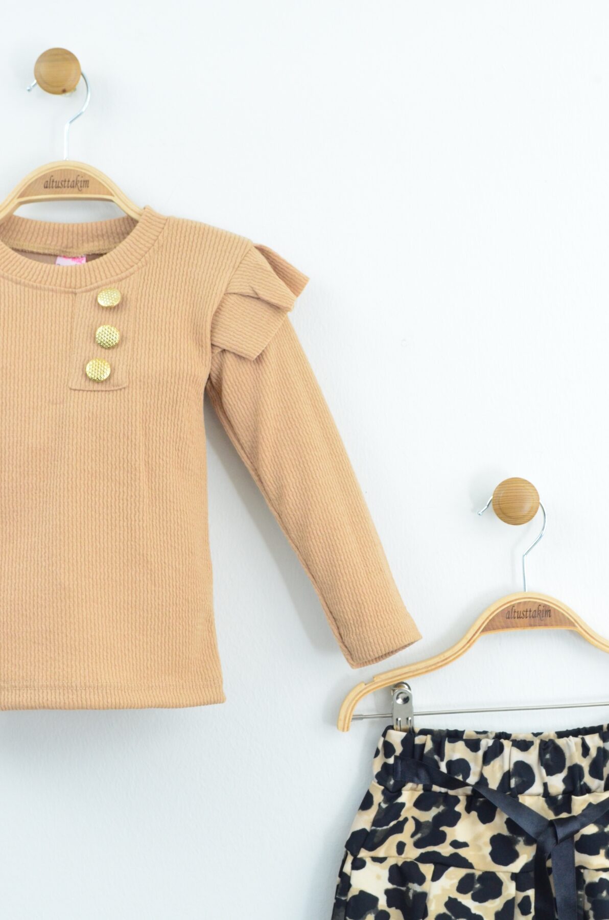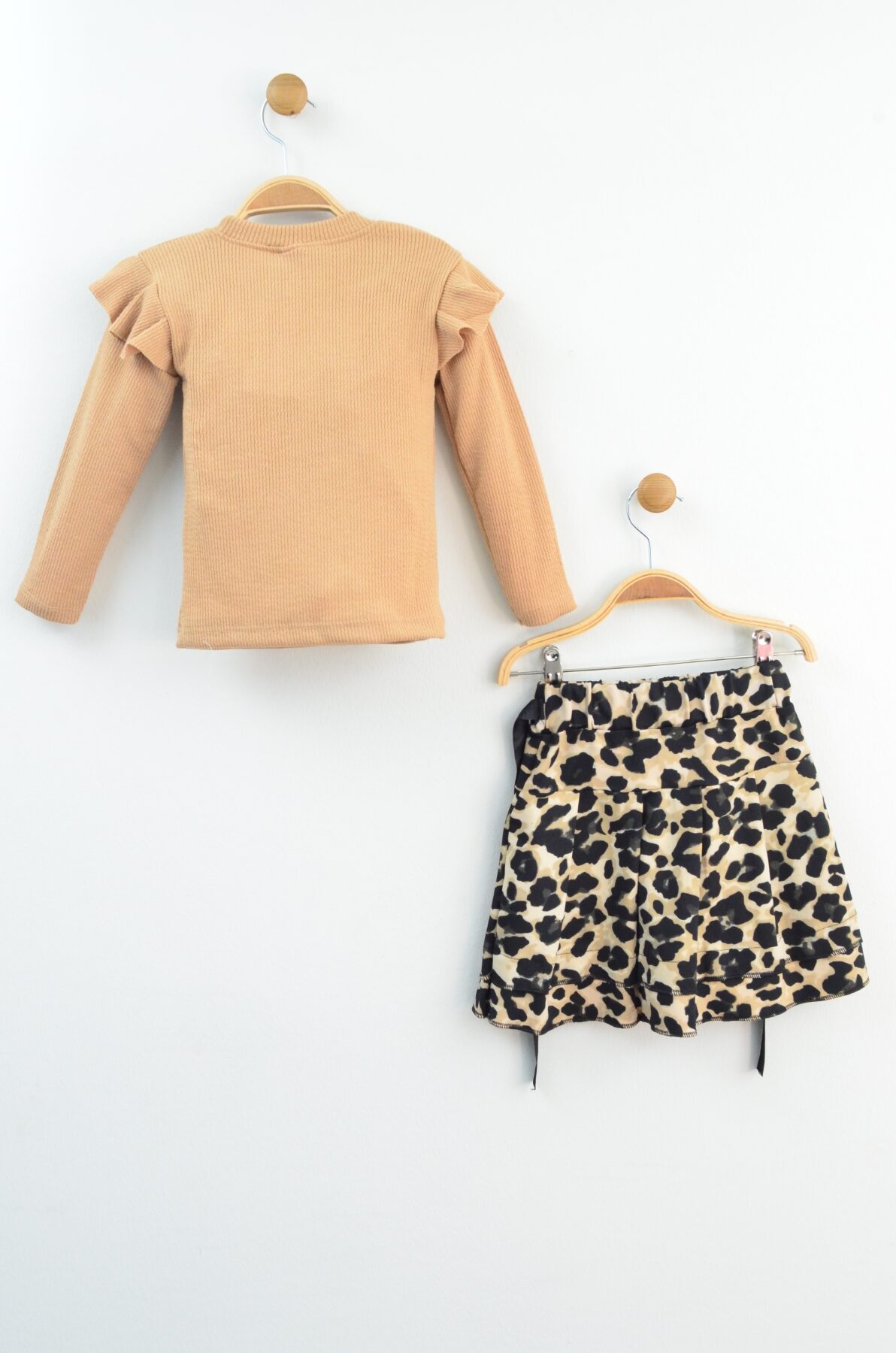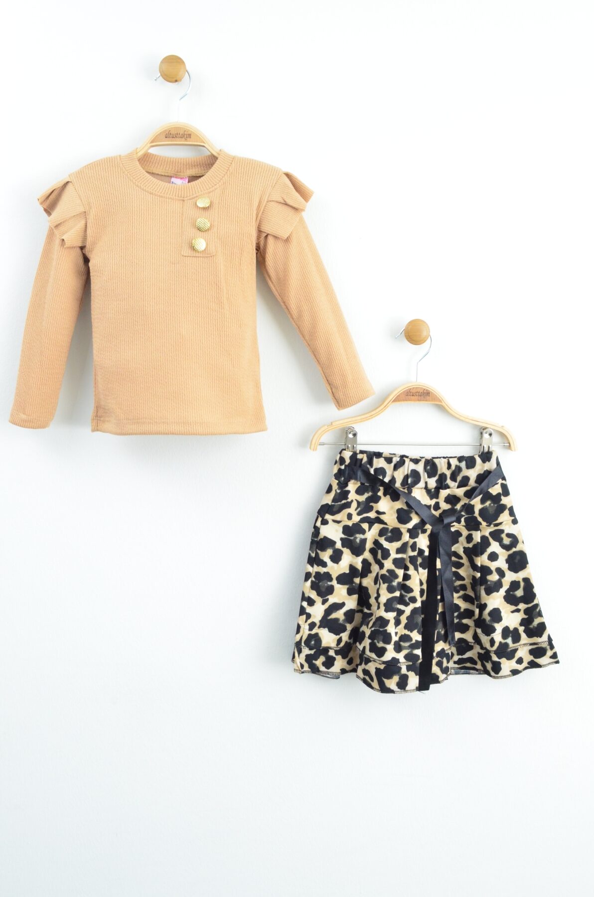 OMUZLARI FIRFIRLI KAHVERENGİ LEOPAR DESENLİ ETEKLİ TAKIM (3-7 YAŞ)