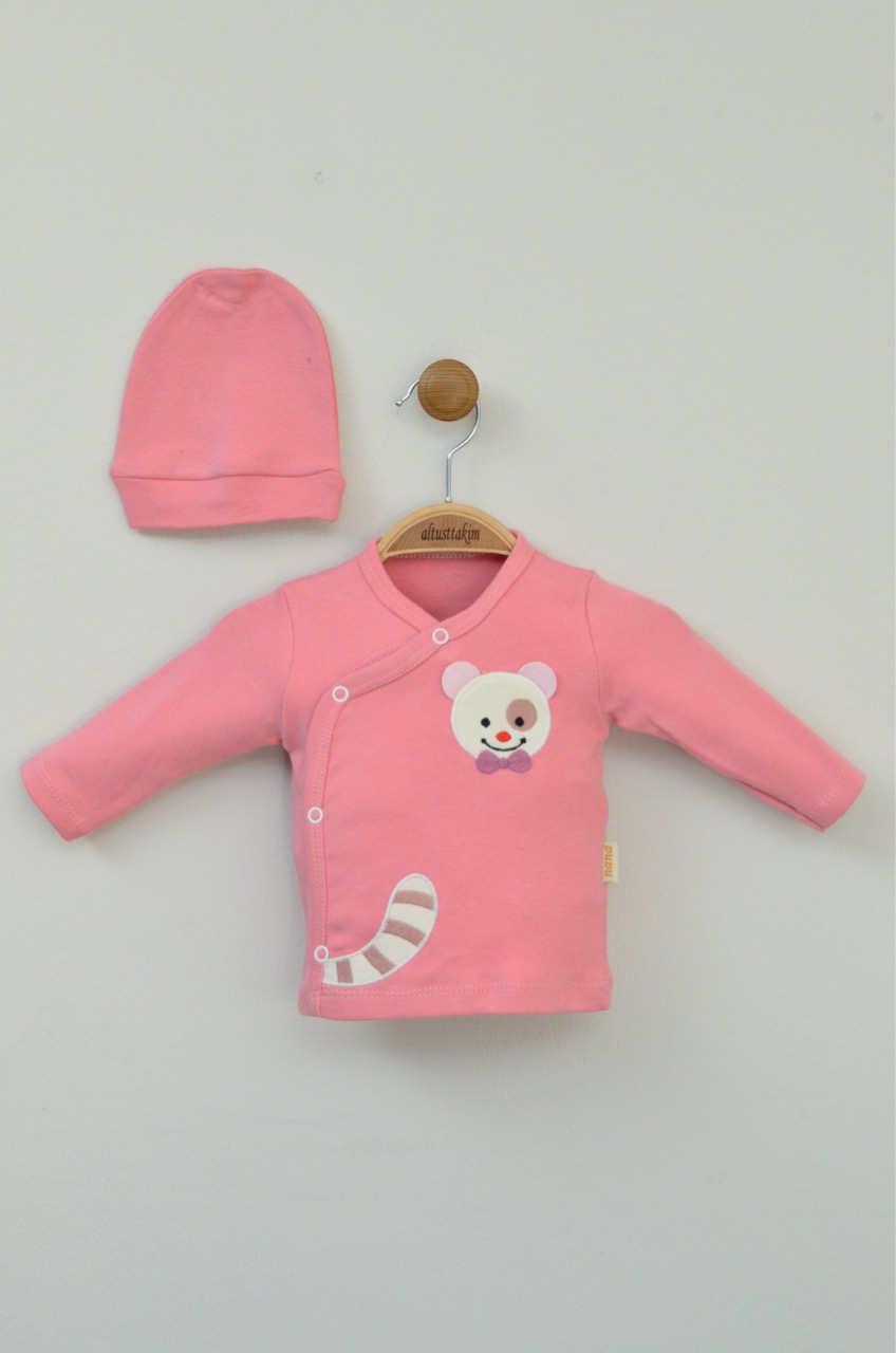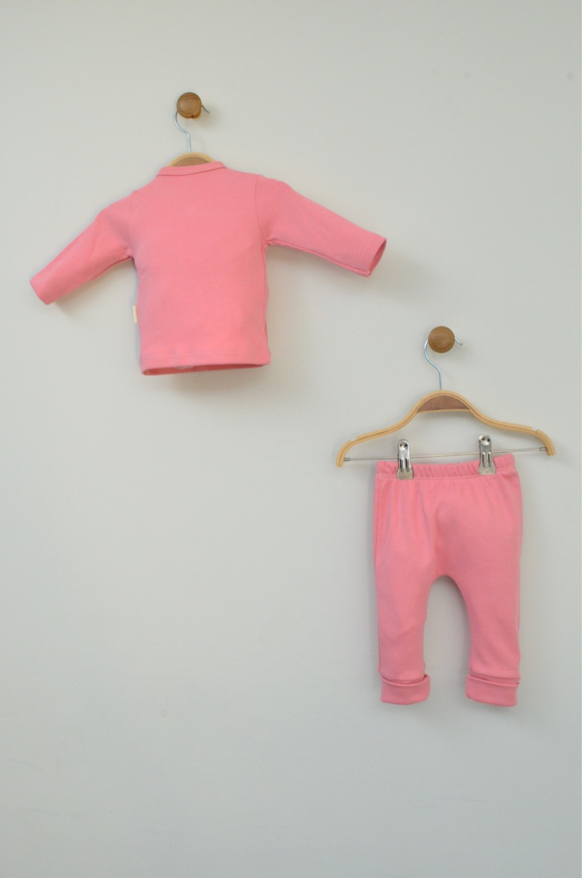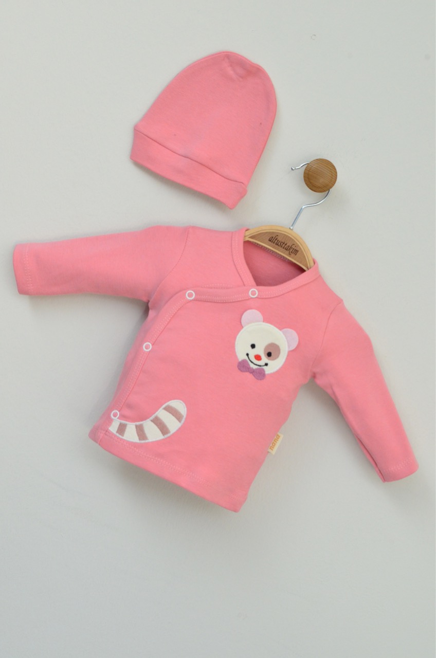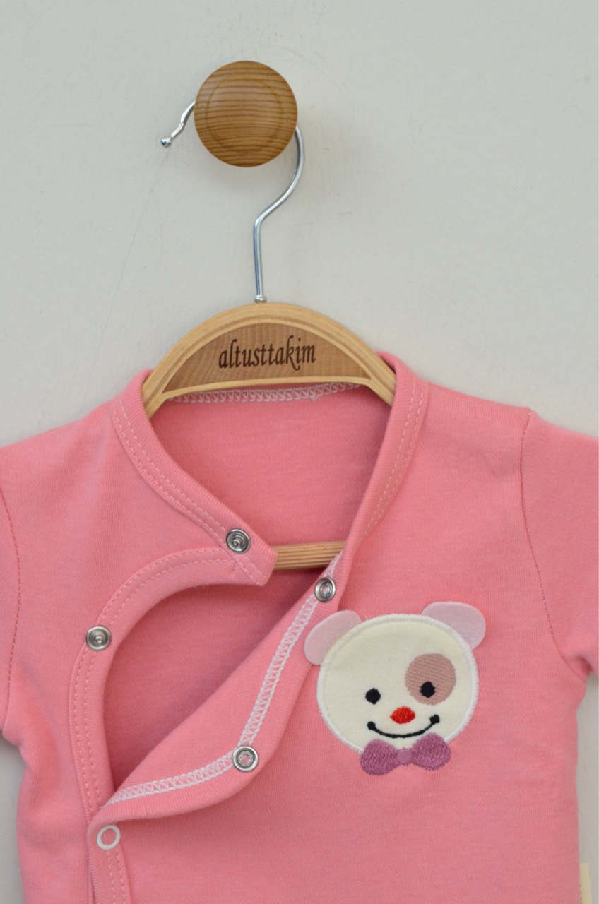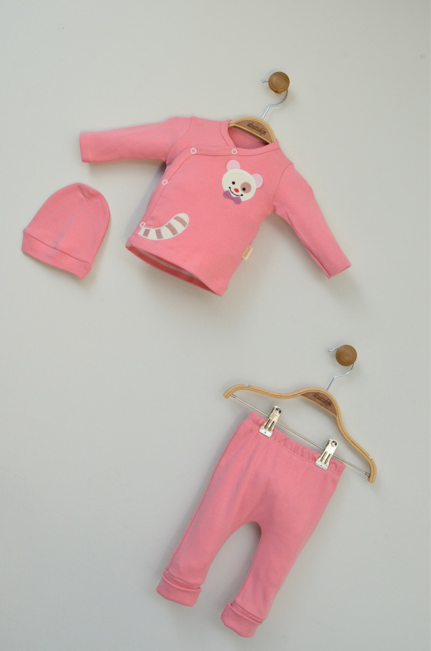 PEMBE AYICIK DETAYLI 3LÜ HASTANE ÇIKIŞI SET (0-9 AY)