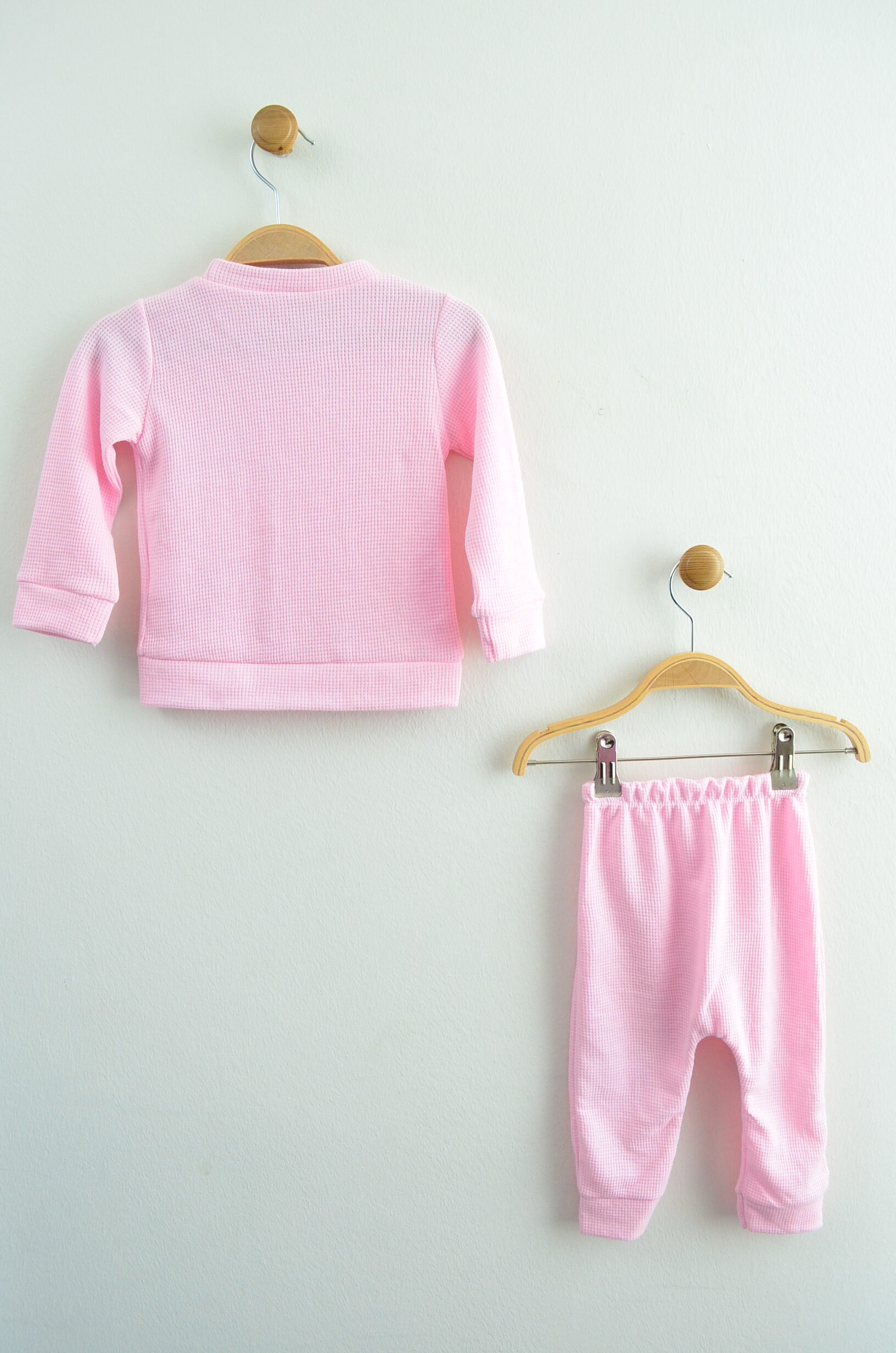 Pembe Kareli Dokulu Sweatshirt ve Eşofman Altı Takım (6-24 Ay)