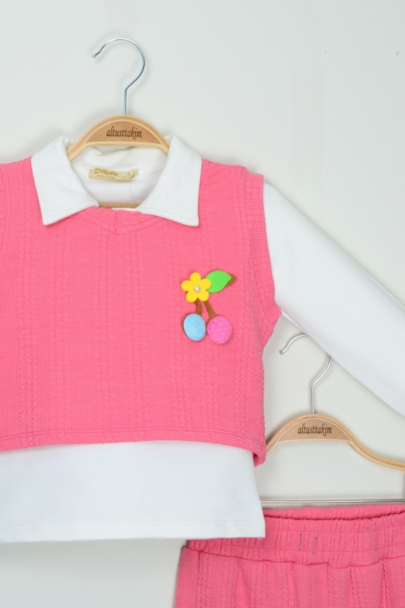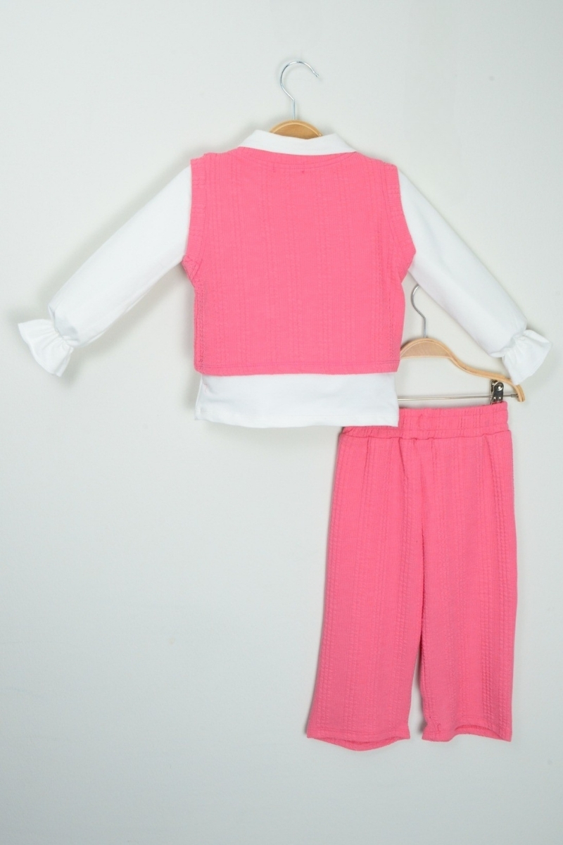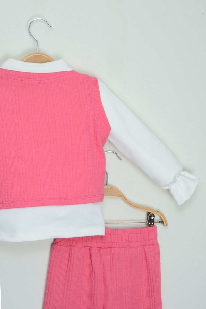 Pembe Triko Yelek ve Fitilli İki Parça Takım