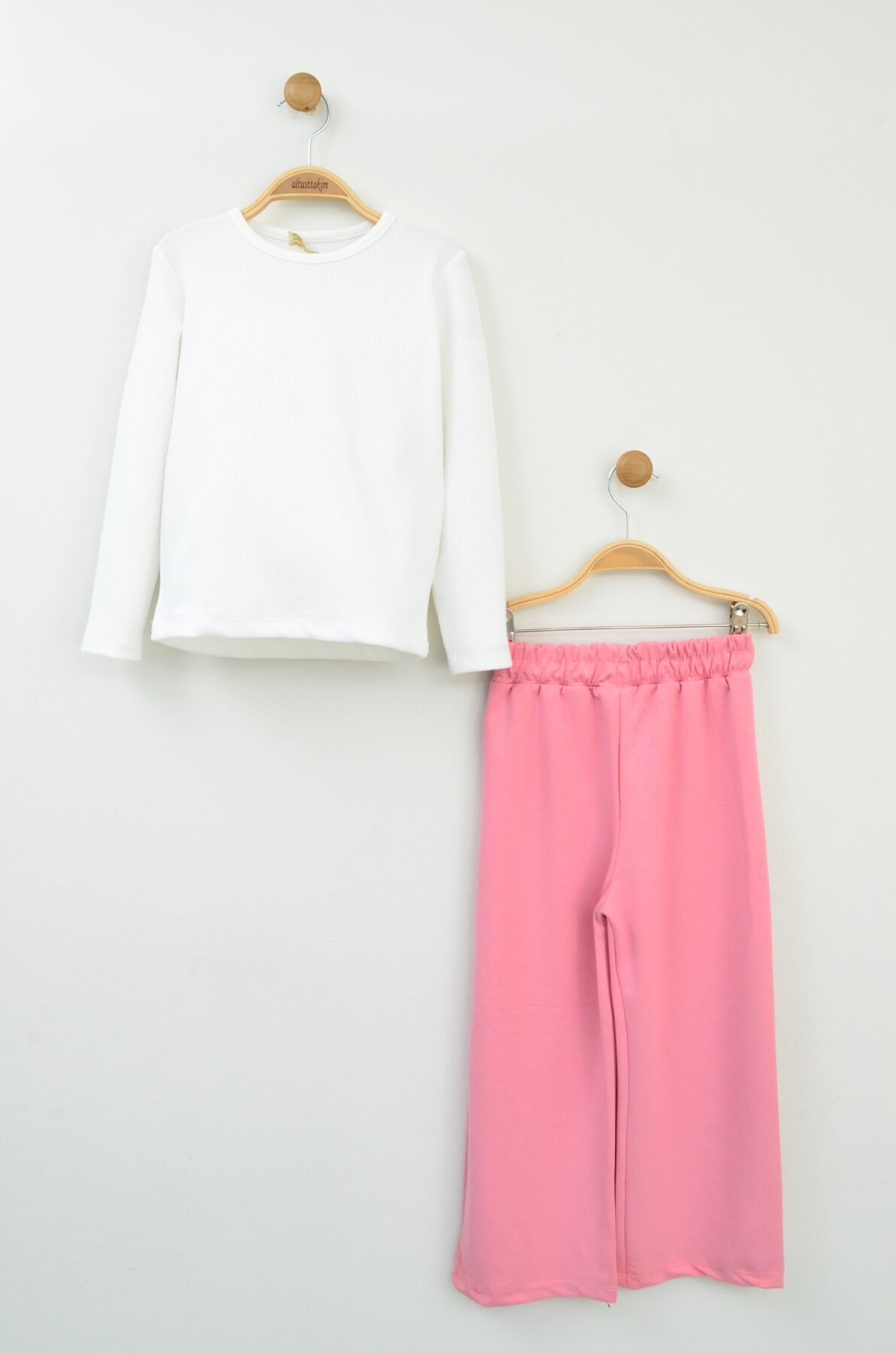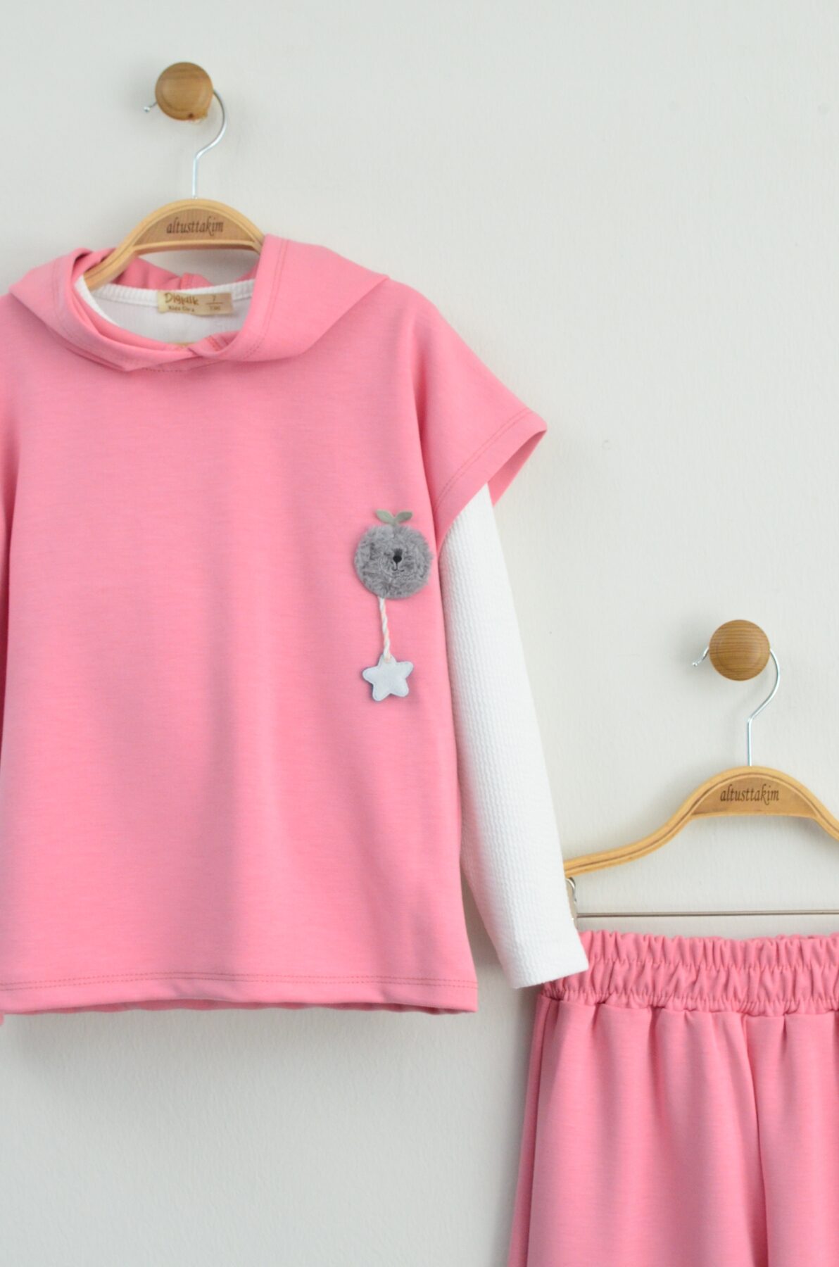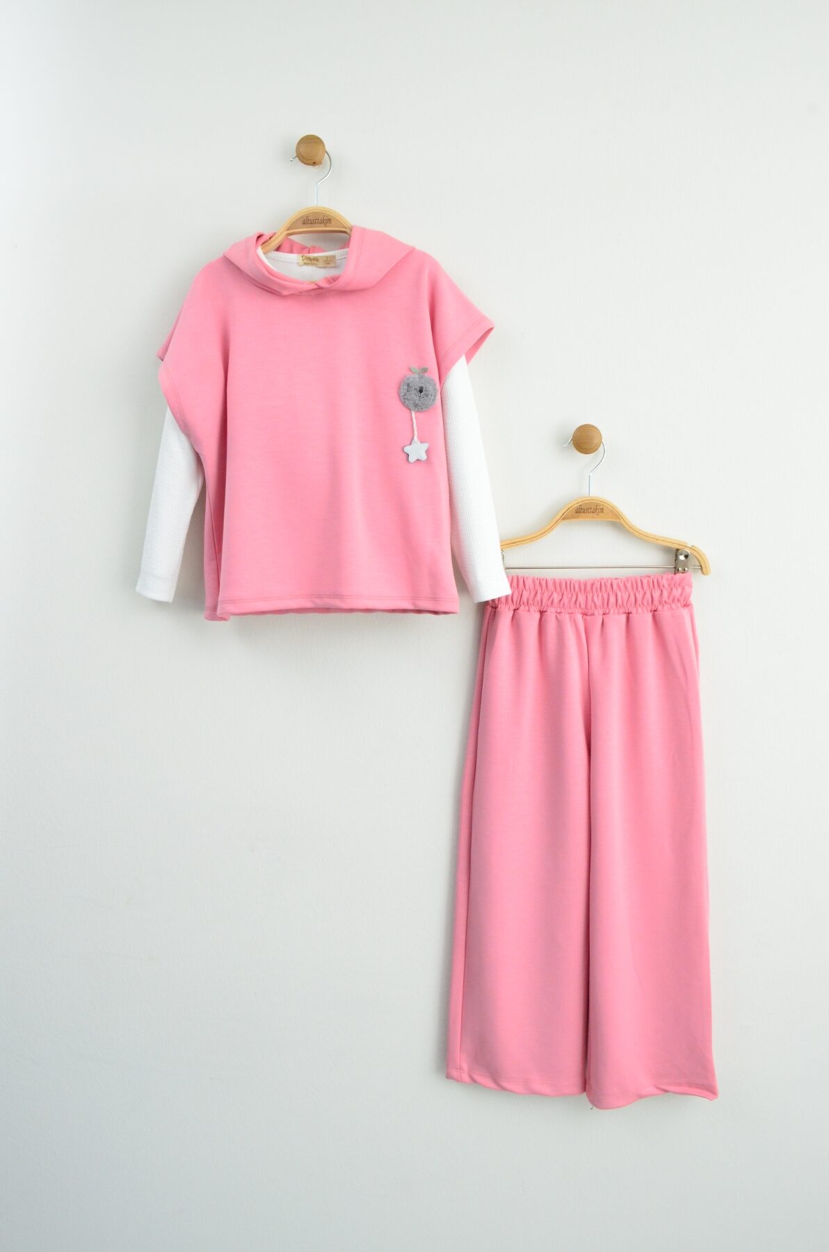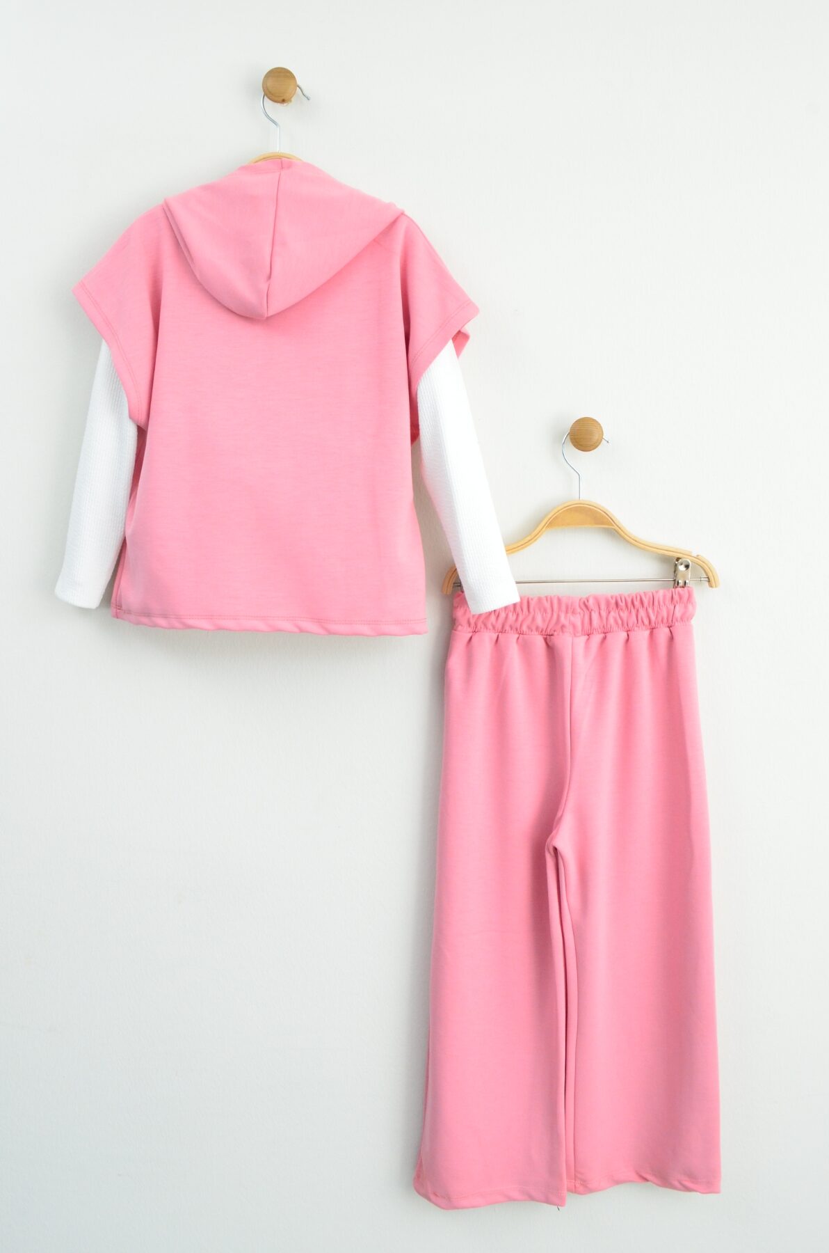 Pembe Yelek Detaylı Üç Parça Takım (7-10 Yaş)