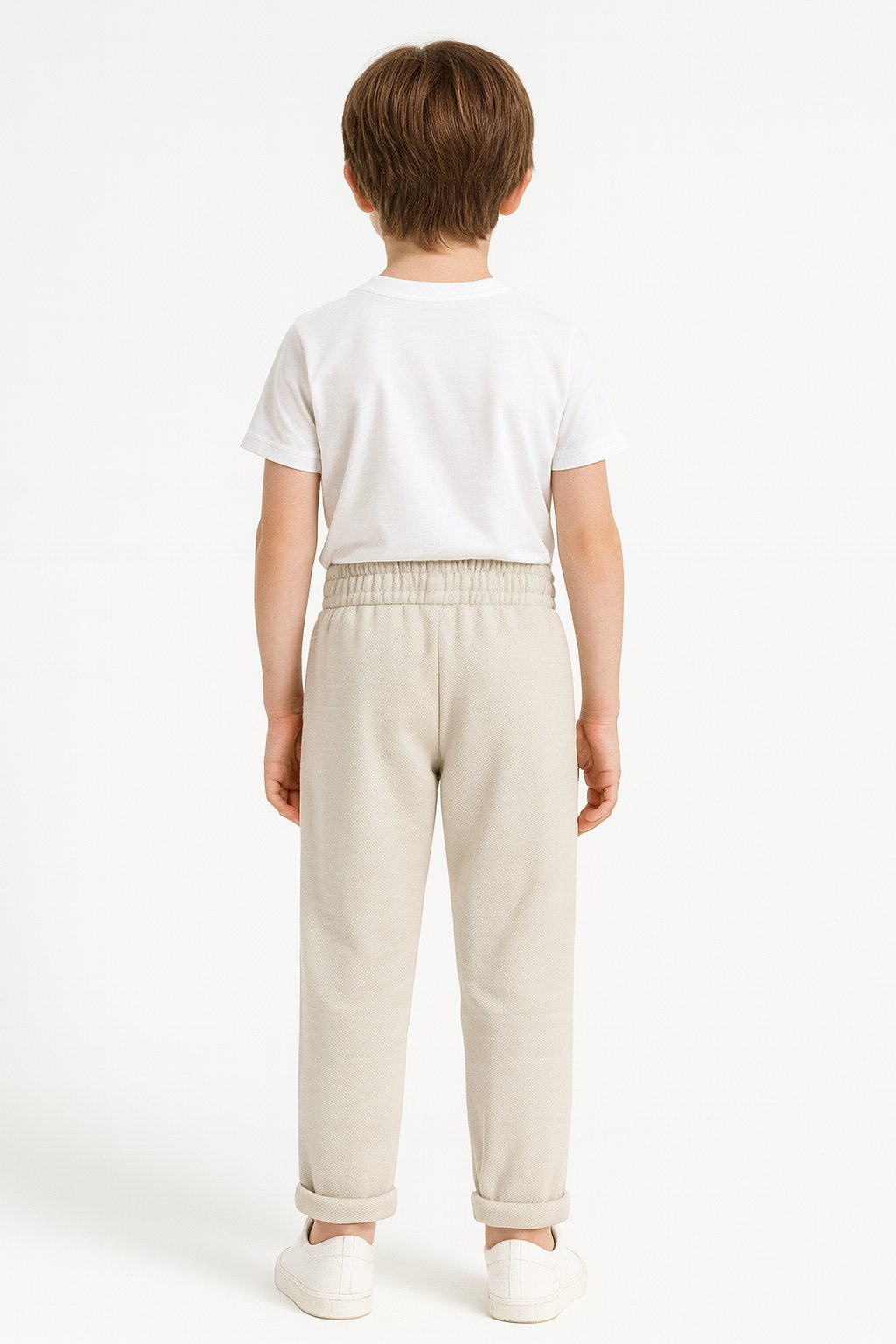 Bu jogger pantolon, 6-14 yaş arası erkek çocuklarınızın hem rahat hem de şık bir stil sergilemesi için tasarlandı. Düz bej rengi, modern ve zamansız bir görünüm sunar. Bel kısmındaki lastik ve ayarlanabilir ipli detayı, pantolonun çocuğunuzun üzerine tam oturmasını ve rahat bir kullanım sağlamasını garanti eder. Paça kısımlarının kıvrık yapısı, takıma spor ve dinamik bir hava katar. İnce ve yumuşak kumaş içeriği sayesinde hassas çocuk cildine dosttur ve nefes alabilen yapısıyla sıcak havalarda ideal bir tercihtir.