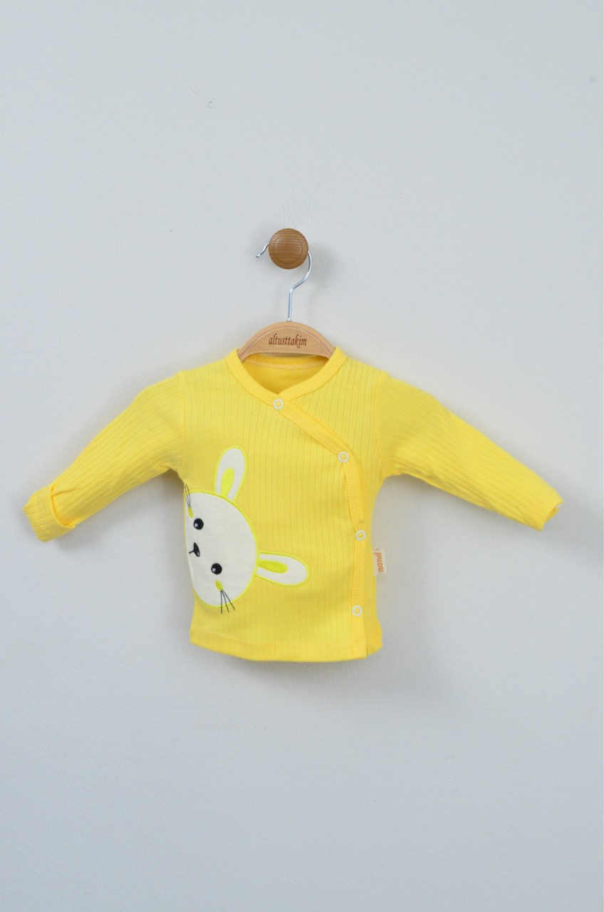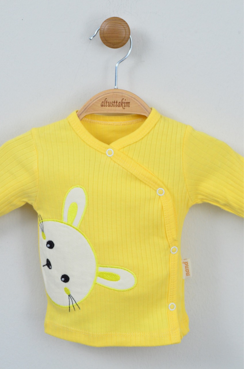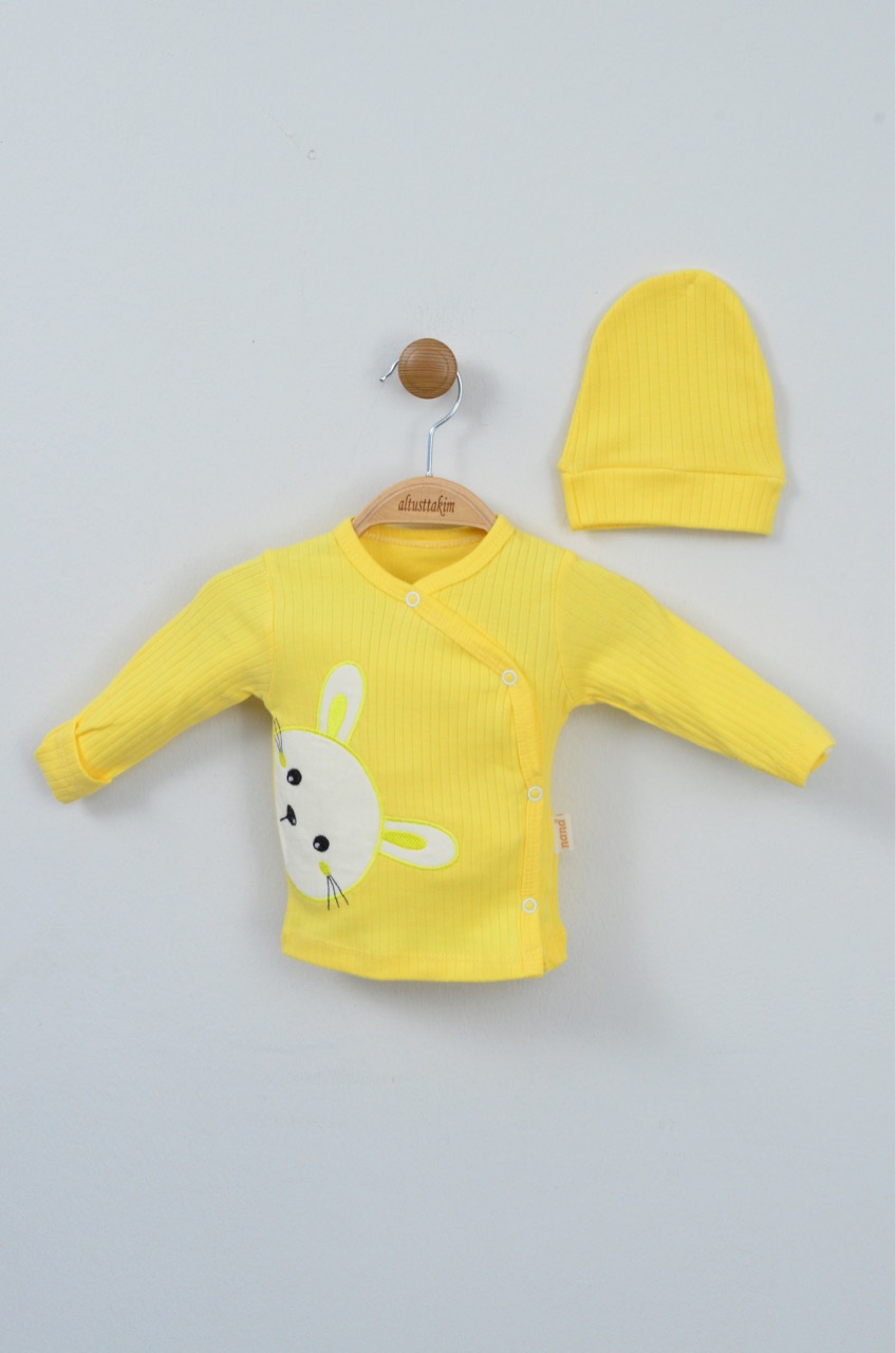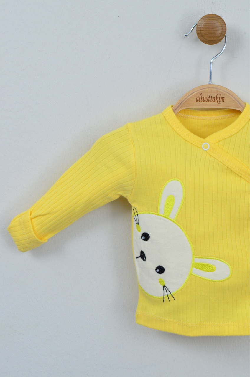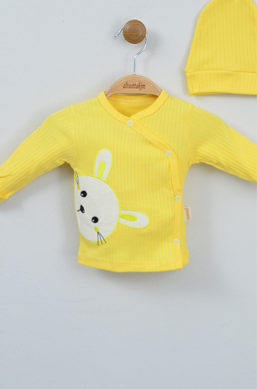 Sarı Tavşan Aplike %100 Pamuk Yenidoğan Üçlü Takım(0-3 Ay)